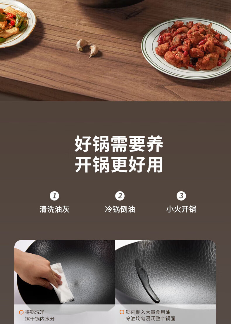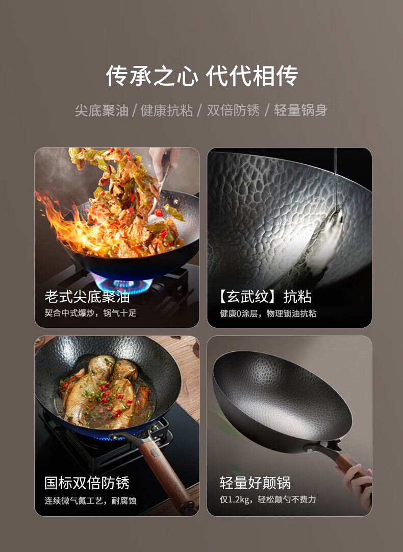 • 商品名称:九阳/Joyoung CF32-C232 九阳(Joyoung)铁锅精铁不锈无涂层家用炒菜锅爆炒锅 CF32-C232【双倍防锈】32cm CF32-C232