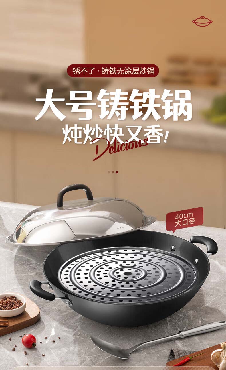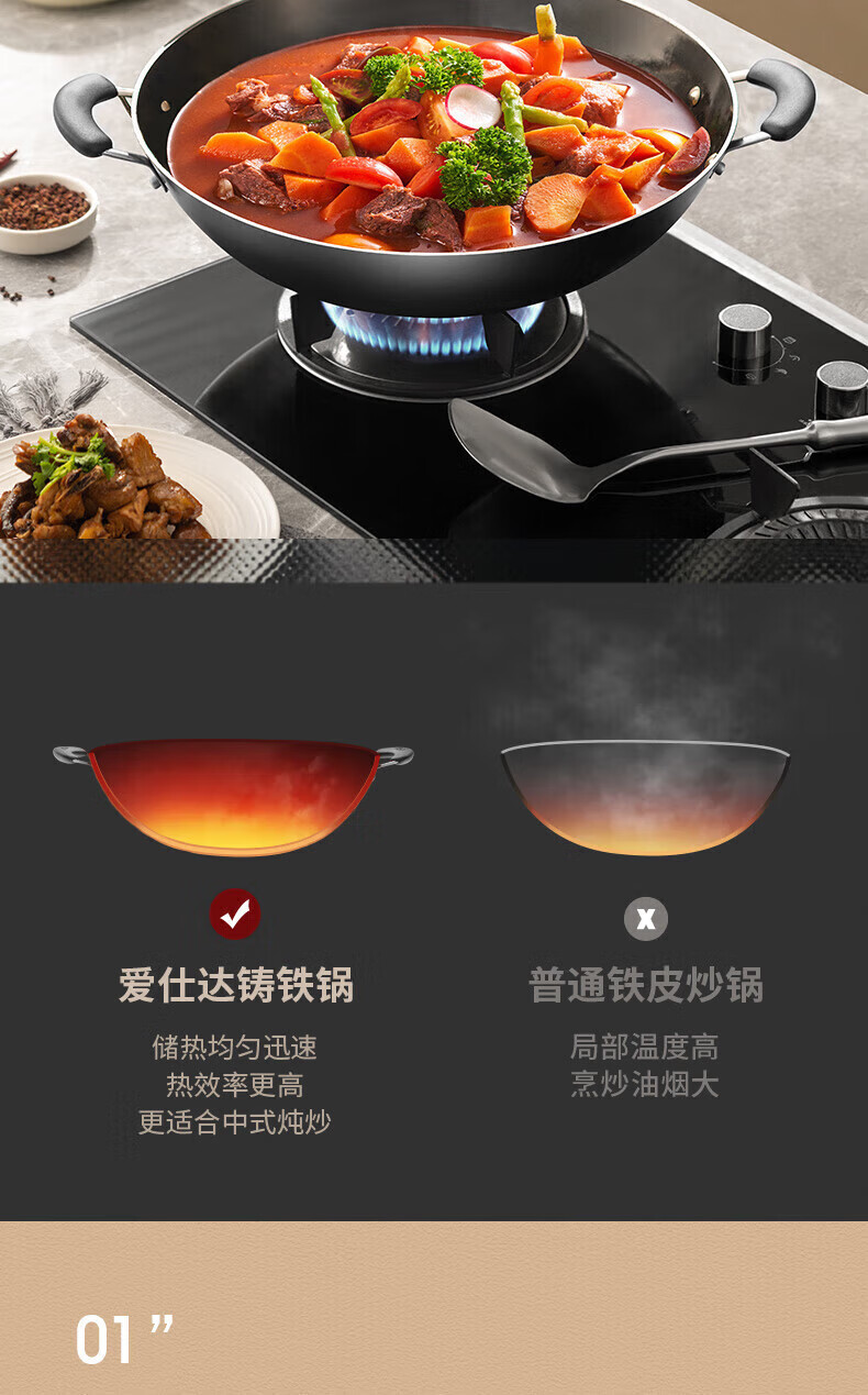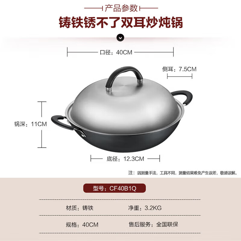 厨具  > 烹饪锅具  > 炒锅  >  爱仕达/ASD  >  爱仕达/ASD CF40B1Q 爱仕达(ASD)CF40B1Q 40cm 铸铁 炒菜锅 黑色 (计价单位:个) CF40B1Q