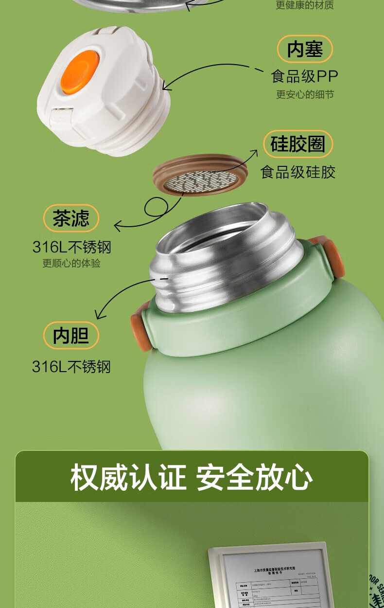 • 商品名称:苏泊尔/SUPOR KCV13AC10 苏泊尔(SUPOR)保温杯大容量 316不锈钢手提保温杯 KCV13AC10 KCV13AC10