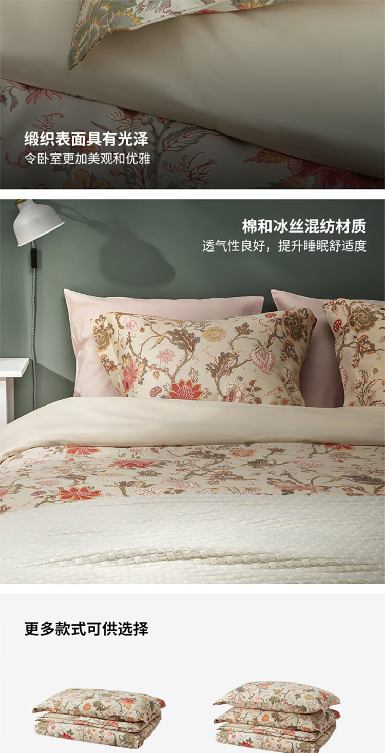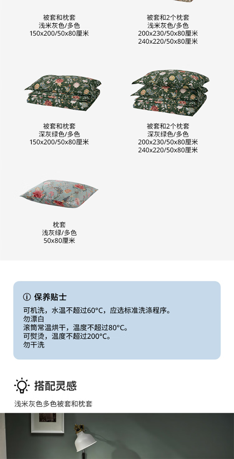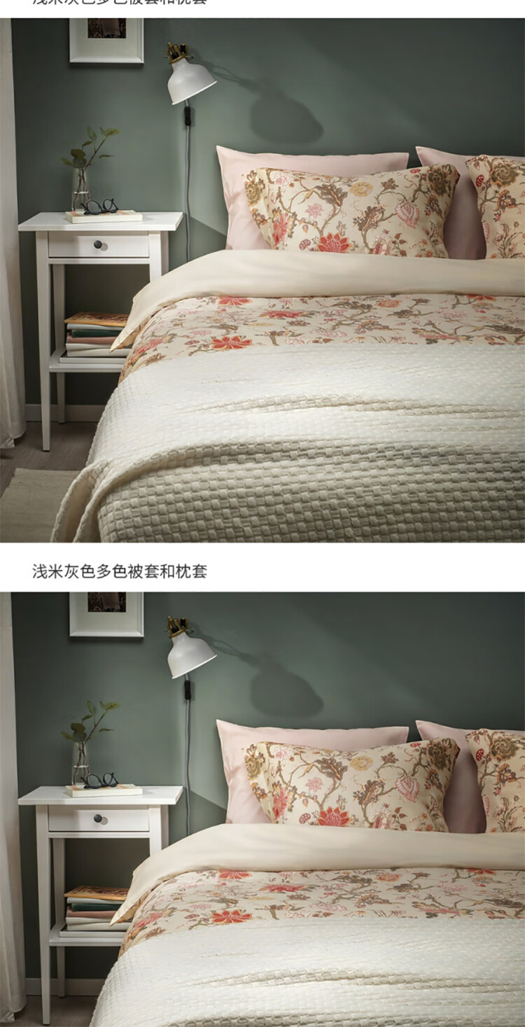 • 商品名称:宜家/IKEA NASSELKLOCKA 宜家IKEA NASSELKLOCKA奈瑟克洛被套+2枕套200x230/50x80 浅米灰/多AP NASSELKLOCKA