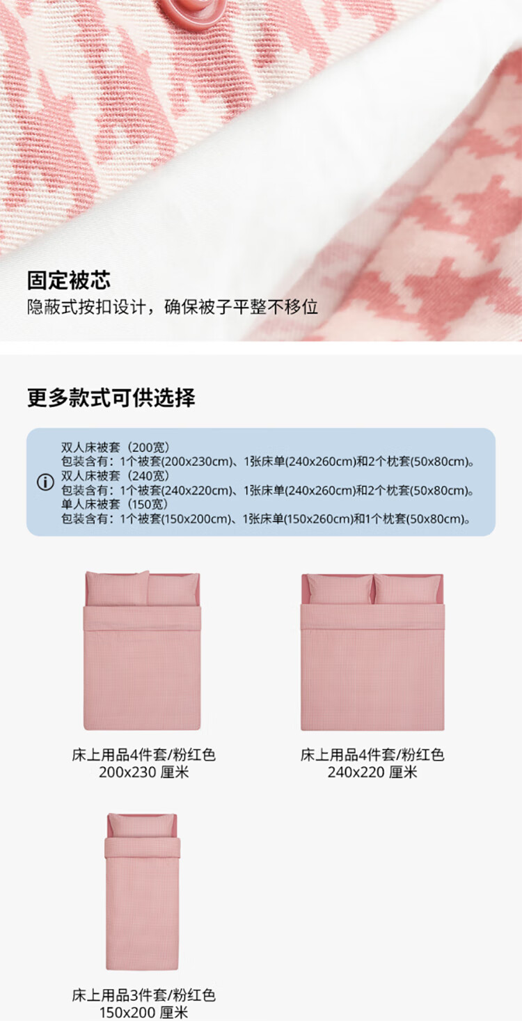 床上用品  > 三件套/四件套/多件套  > 四件套  >  宜家/IKEA  >  宜家/IKEA FACKELSTÅNDS 宜家IKEA FACKELSTANDS 菲克通戴床品4件 200x230 粉 AP FACKELSTÅNDS