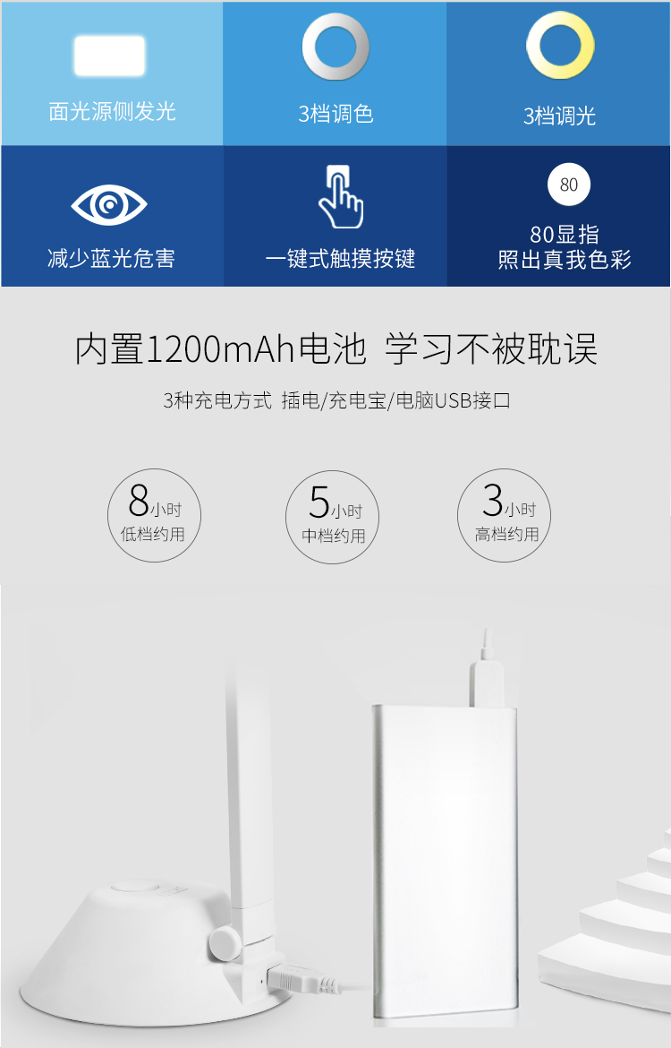 灯饰照明  > 读写灯饰  > 阅读台灯(护眼灯)  >  好视力  >  好视力 TG556 好视力 led台灯 学生学习台灯床头卧室LED阅读充电台灯 TG556-BU TG556