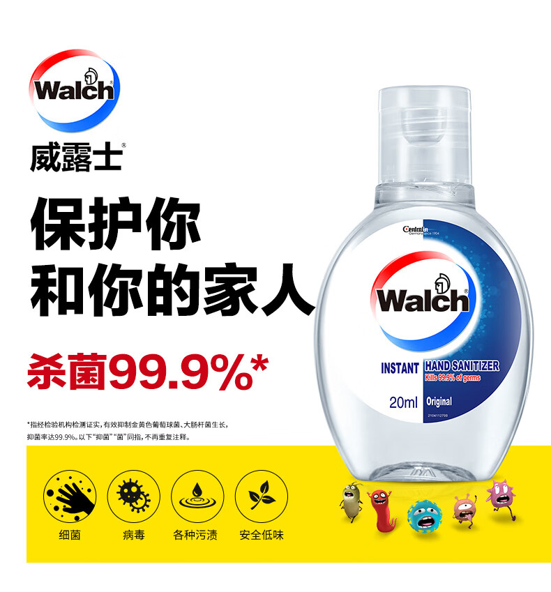 个人护理  > 身体护理  > 洗手液  >  威露士/Walch  >  威露士免洗洗手液 酒精消毒儿童学生便携装 有效杀菌99.9% 20ml*6 威露士001/瓶