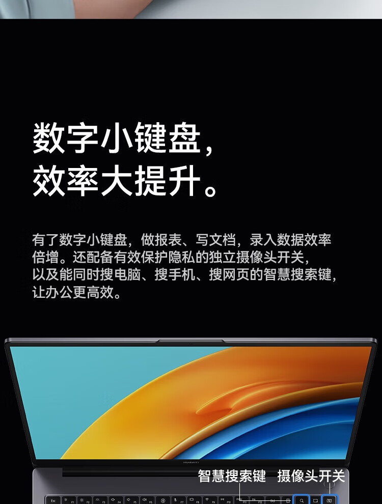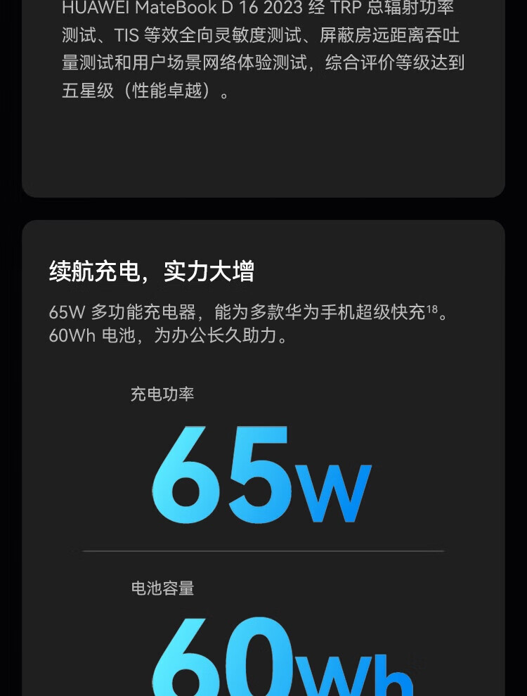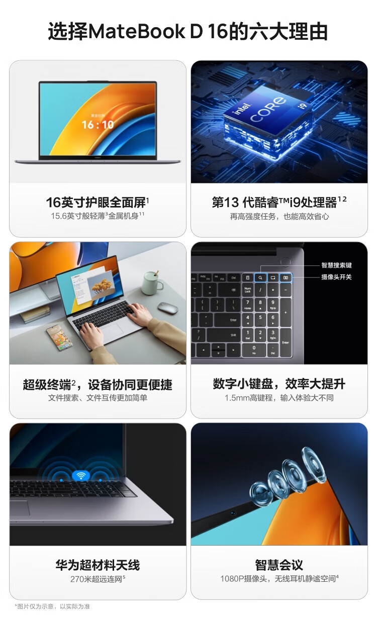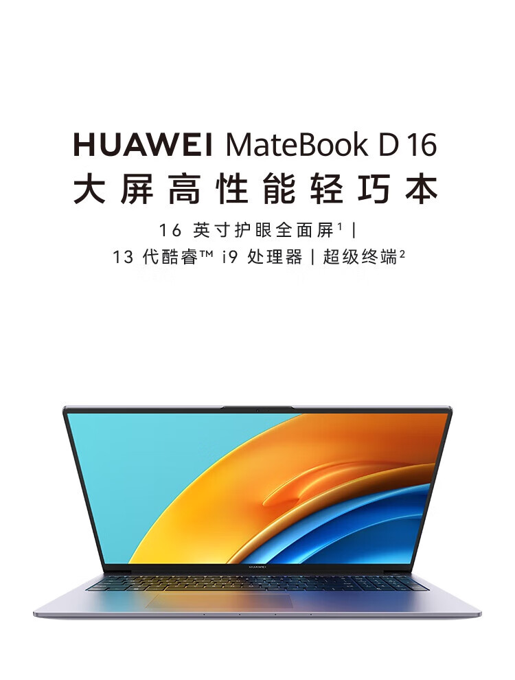 • 商品名称:华为笔记本电脑MateBook D16 13代酷睿版 i5 16G 1T/轻薄商务办公本/16英寸护眼全面屏/手机互联深空灰 MateBook D 16/台