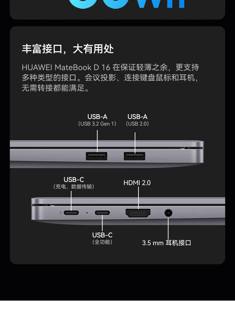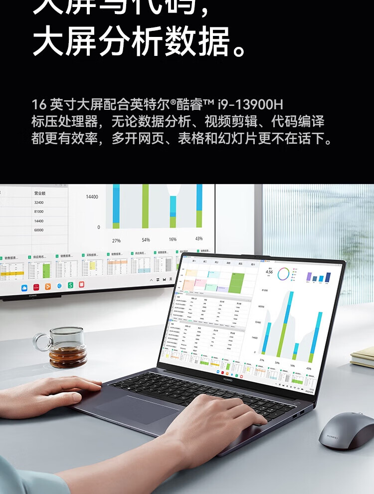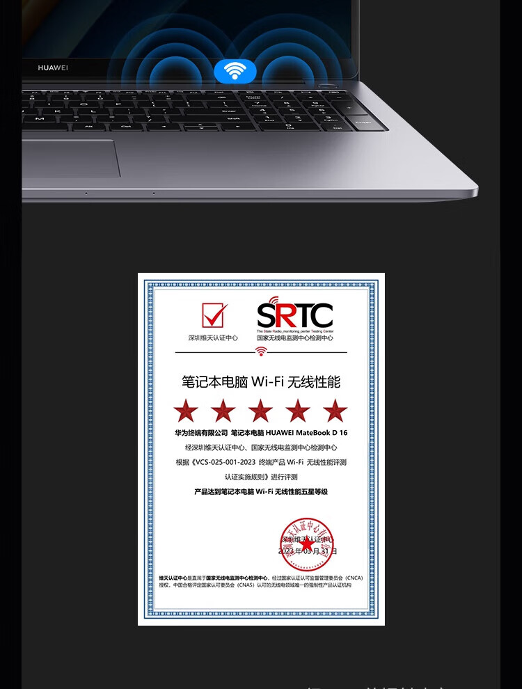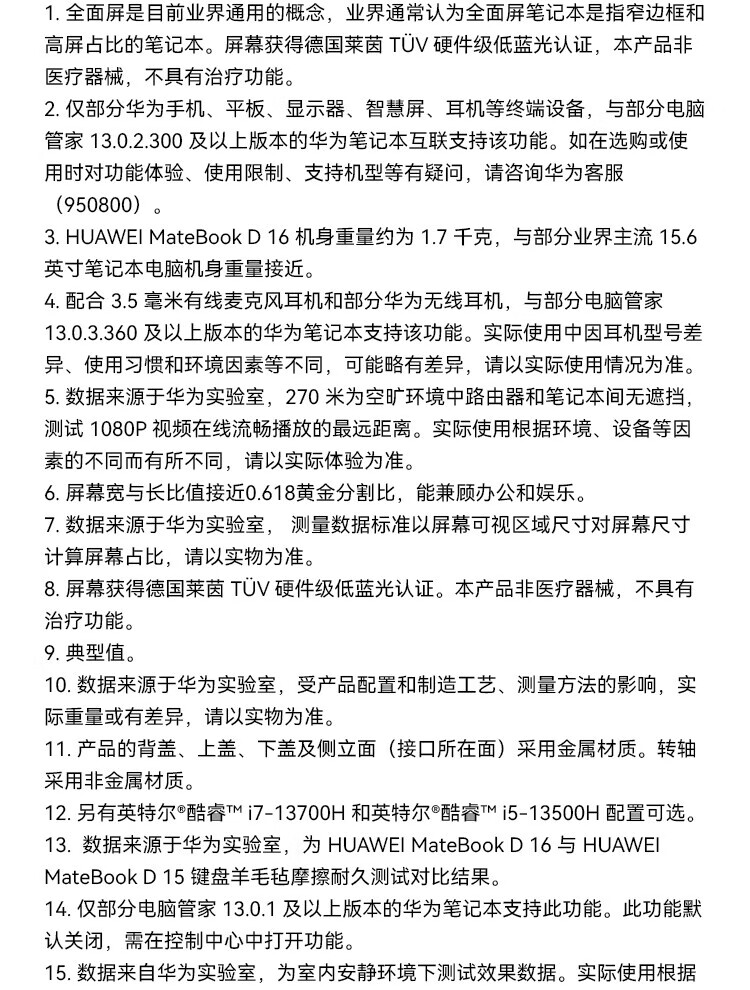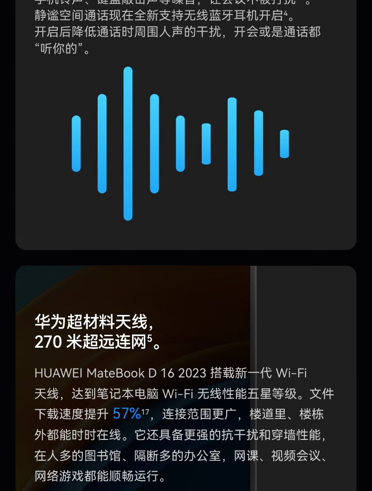 • 商品名称:华为笔记本电脑MateBook D16 13代酷睿版 i5 16G 1T/轻薄商务办公本/16英寸护眼全面屏/手机互联深空灰 MateBook D 16/台
