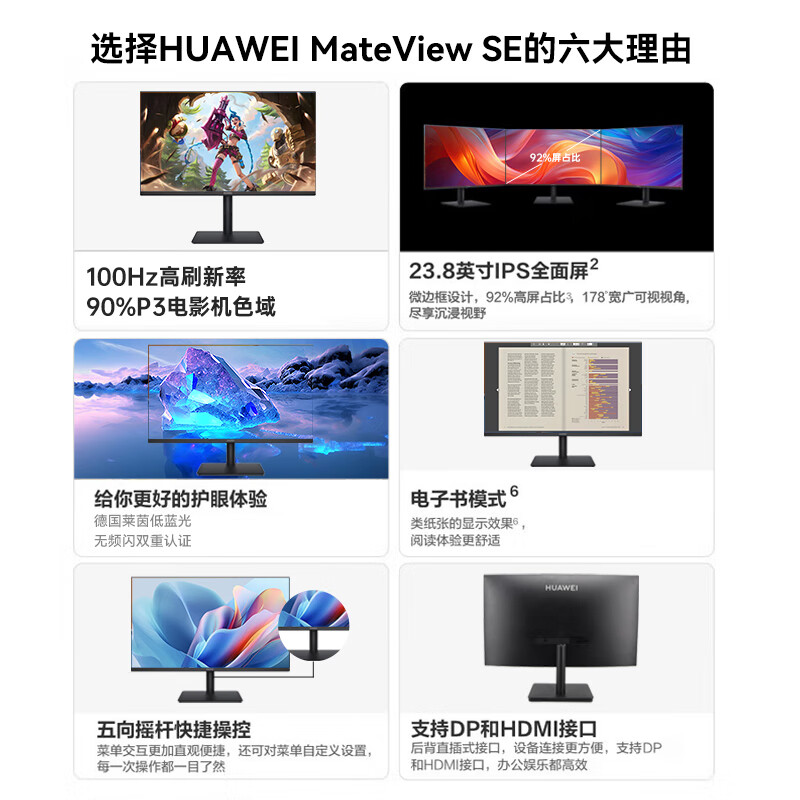 华为(HUAWEI)MateView SE 23.8寸台式电脑显示器监控外接液晶显示屏幕100Hz IPS全面屏1080p拓展屏 SSN-24-CAR/台