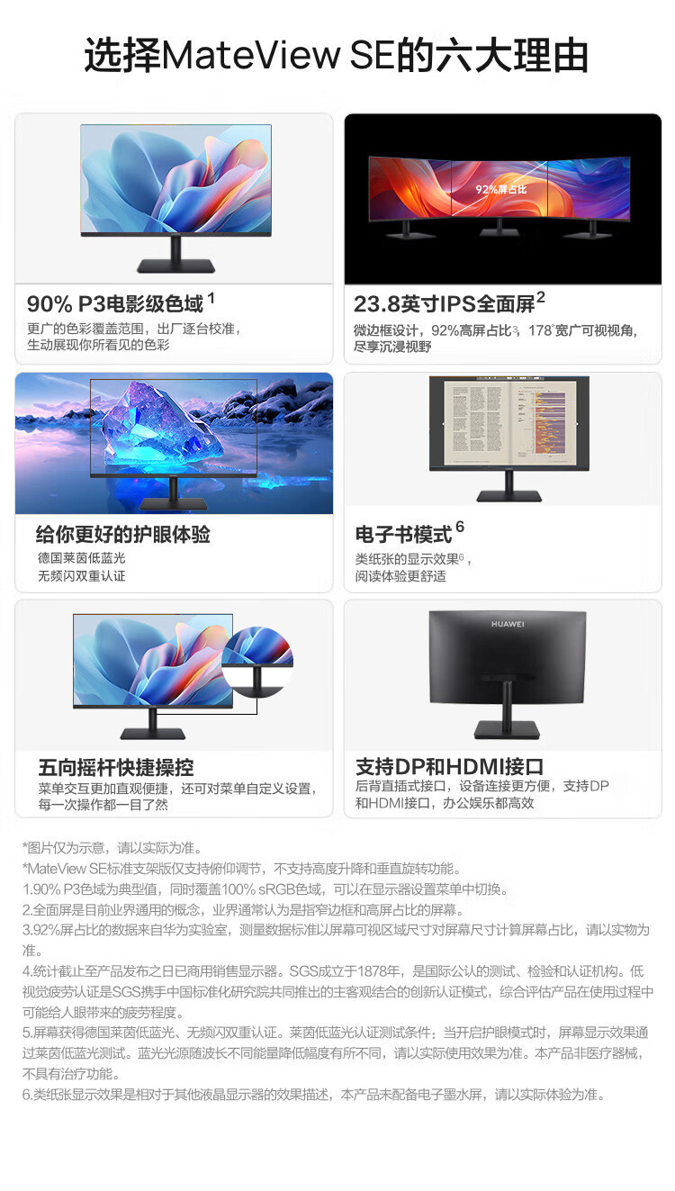 电脑、办公  > 电脑组件  > 显示器  >  华为/HUAWEI  >  华为(HUAWEI)MateView SE 23.8寸台式电脑显示器监控外接液晶显示屏幕100Hz IPS全面屏1080p拓展屏 SSN-24-CAR/台