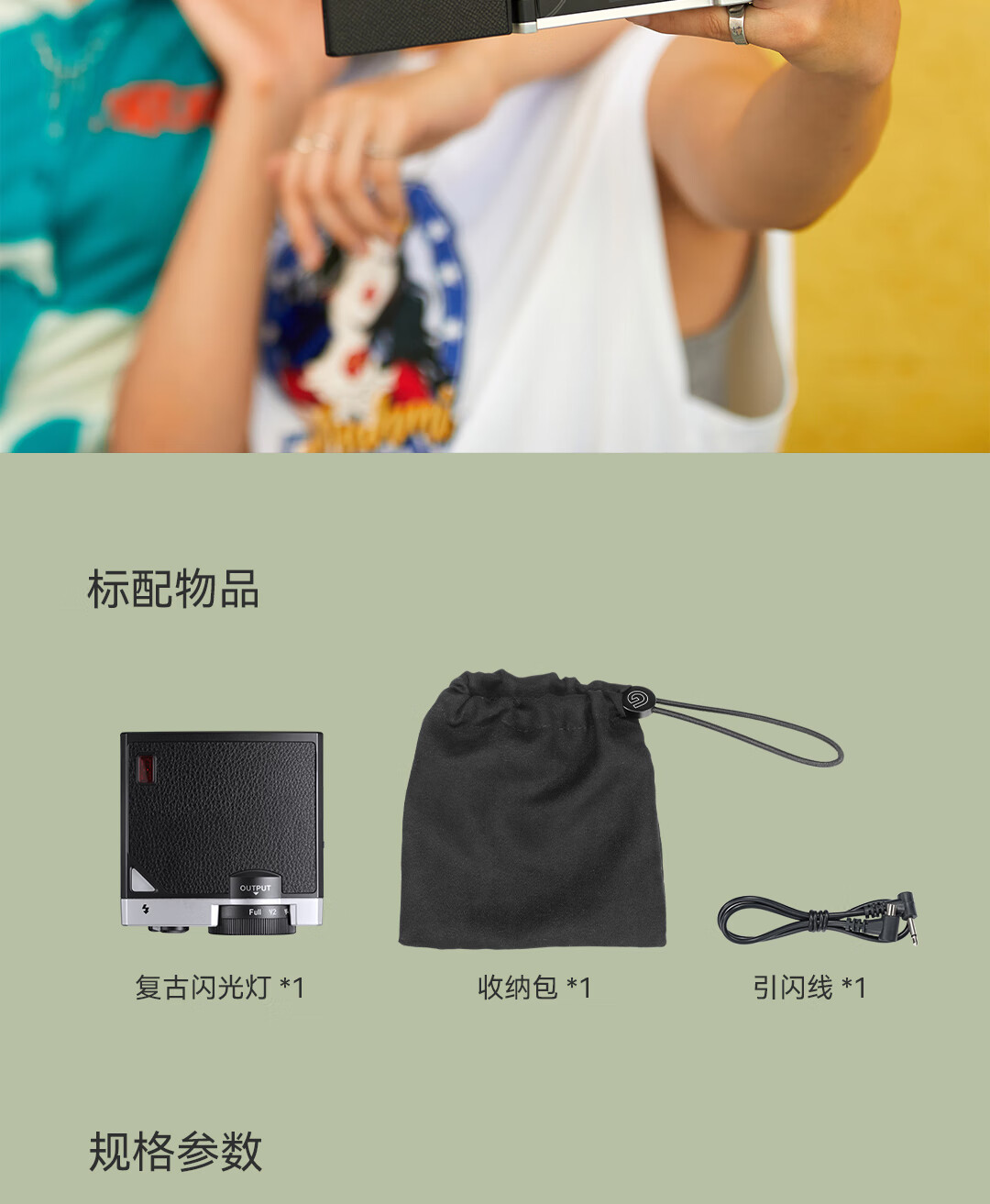 包装清单: 复古闪光灯*1+收纳包*1+引闪线*1
