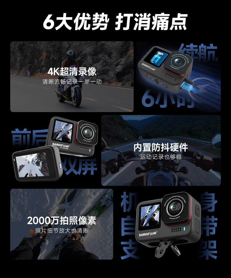 数码  > 摄影摄像  > 运动相机  >  山狗  >  山狗A7 运动相机 4k高清摩托车行车记录仪自行车头盔vlog骑行钓鱼防水户外小型摄像机【高配】 A7/台