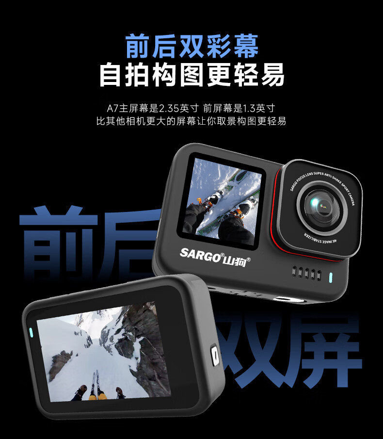 • 商品名称:山狗A7 运动相机 4k高清摩托车行车记录仪自行车头盔vlog骑行钓鱼防水户外小型摄像机【高配】 A7/台