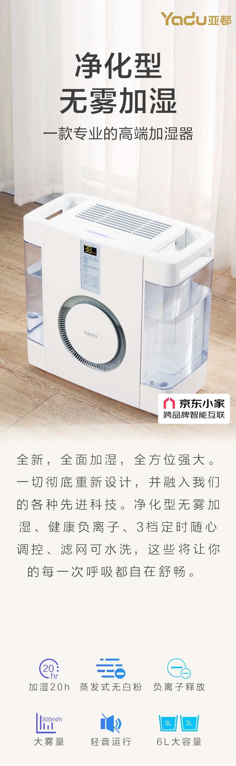 商品名称: 亚都(YADU)无雾加湿器卧室母婴用轻音低噪空气加湿器 6L大容量 京东小家控制办公室卧室家用SZK-J360WiFi SZK-J360WiFi/台