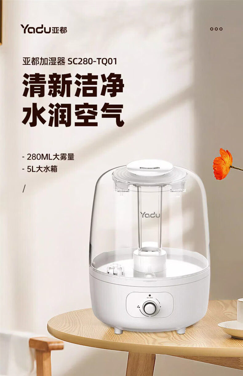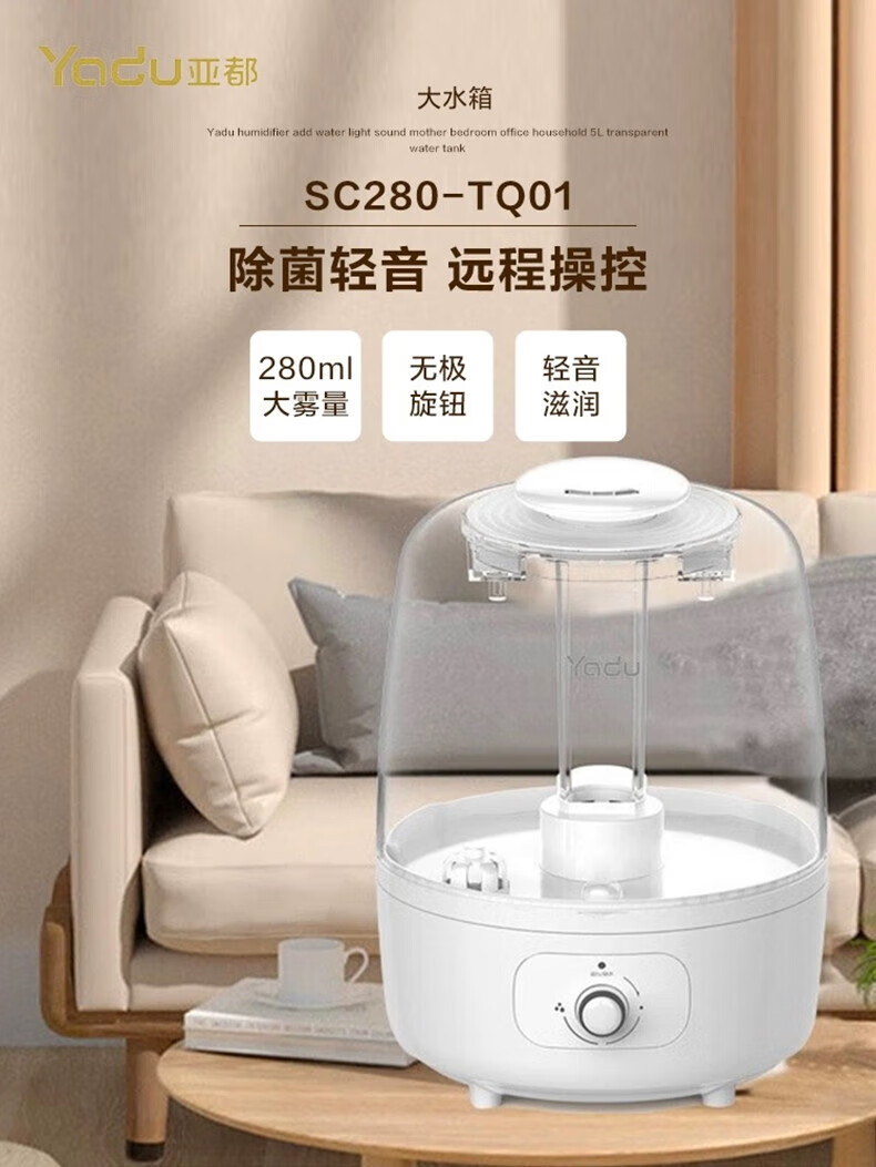 家用电器  > 生活电器  > 加湿器  >  亚都/YADU  >  亚都 加湿器SC280-TQ01上加水静音卧室办公家用5L透明水箱空气增湿 SC280-TQ01/台