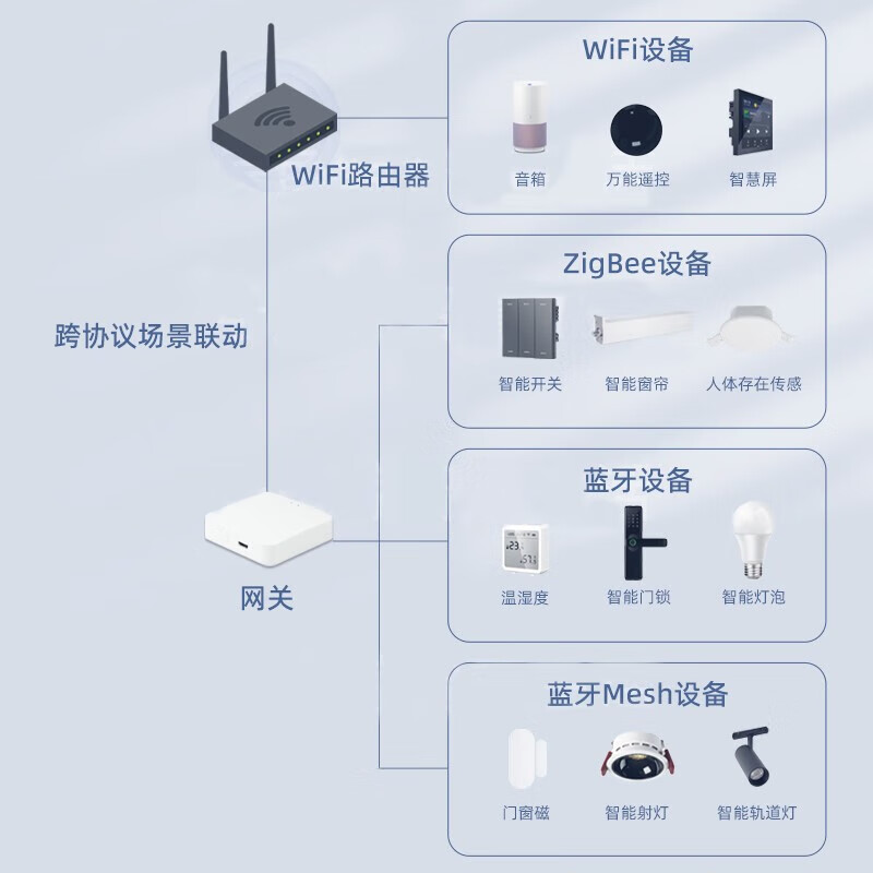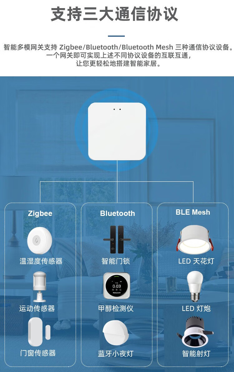 • 商品名称:华运通网关远程全屋控制 无线多模有线多功能蓝牙Mesh中控主机 ZigBee无线网关 ZigBee无线网关 /个
