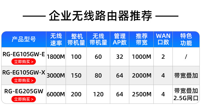 电脑、办公  > 网络产品  > 路由器  >  锐捷  >  锐捷(Ruijie)千兆WiFi6企业级无线网关路由器 RG-EG105GW-E 双频1800M 多WAN口 无线AC控制器 RG-EG105GW-E/台