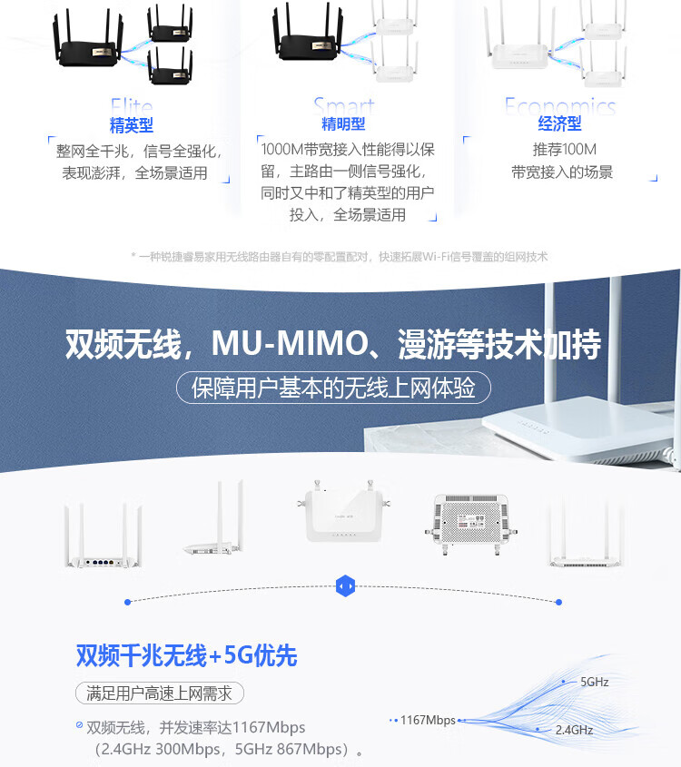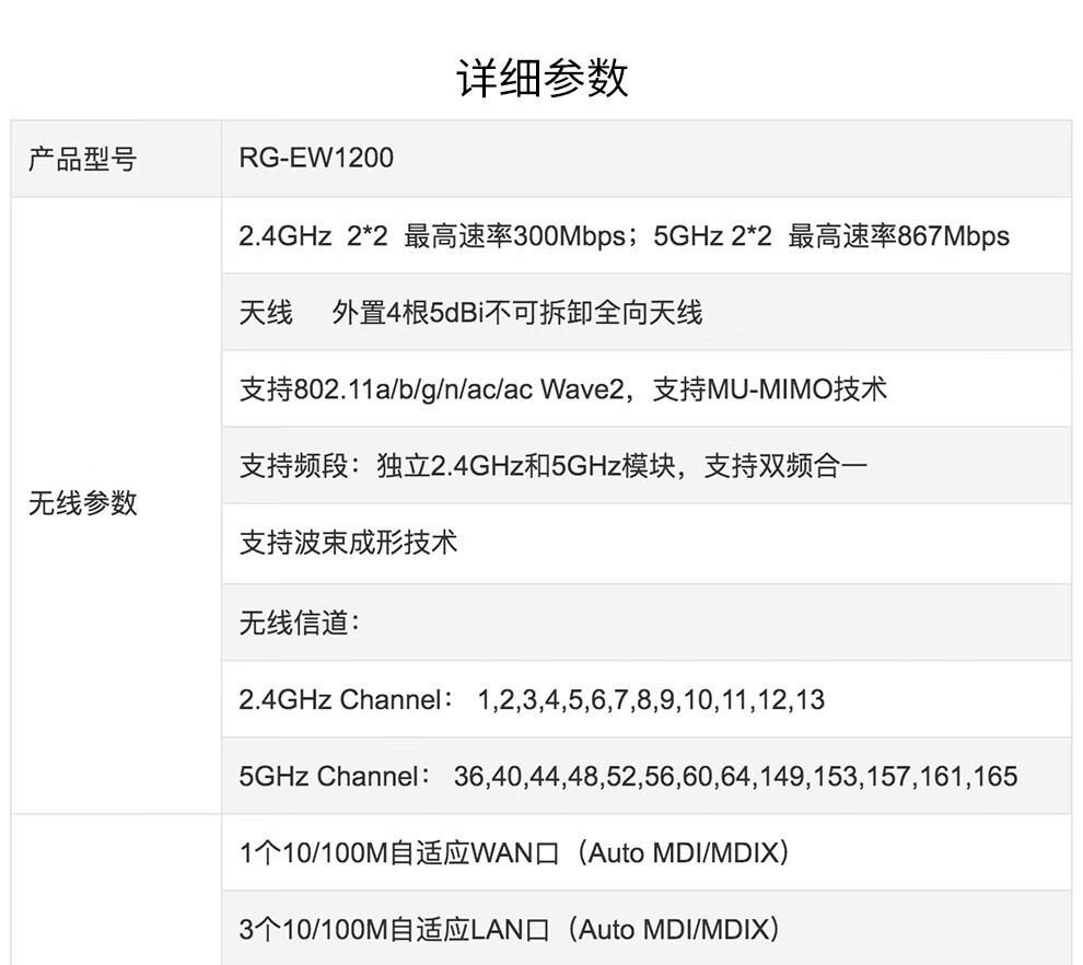 • 商品名称:锐捷(Ruijie)家用无线路由RG-EW1200 双频1167M 支持子母路由 大户型复式平层全屋wifi信号穿墙王放大器 MESH RG-EW1200/台