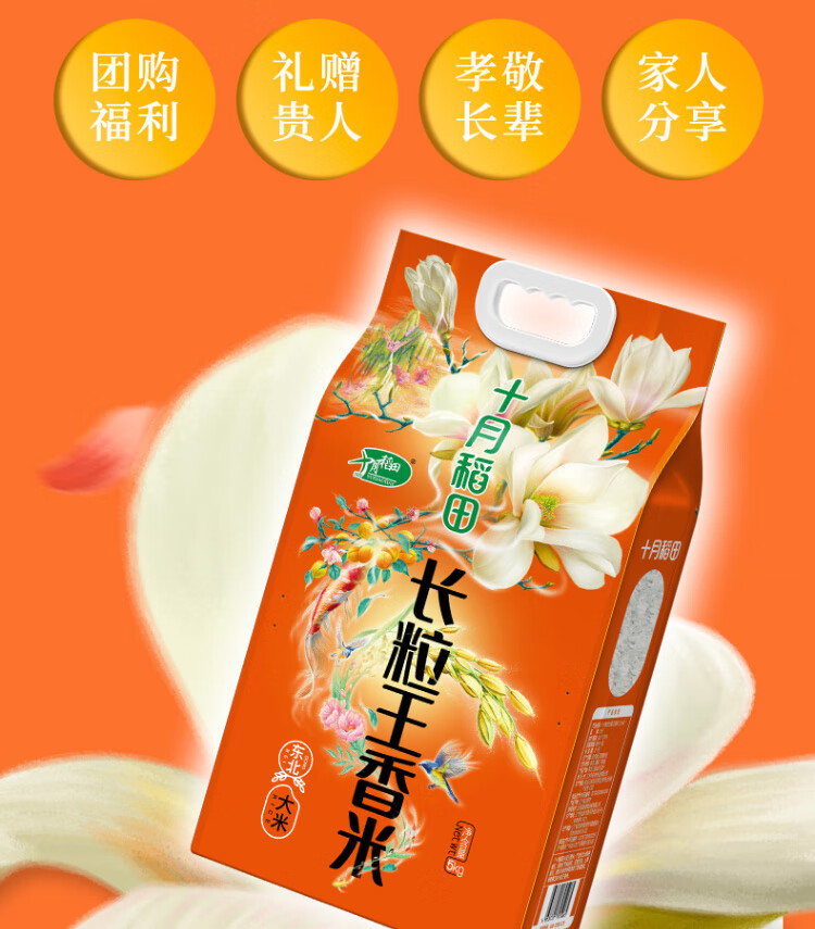 • 商品名称:十月稻田 2025年新米 长粒王香米 10斤(东北大米 长粒香米 5公斤) 长粒香大米5kg/袋