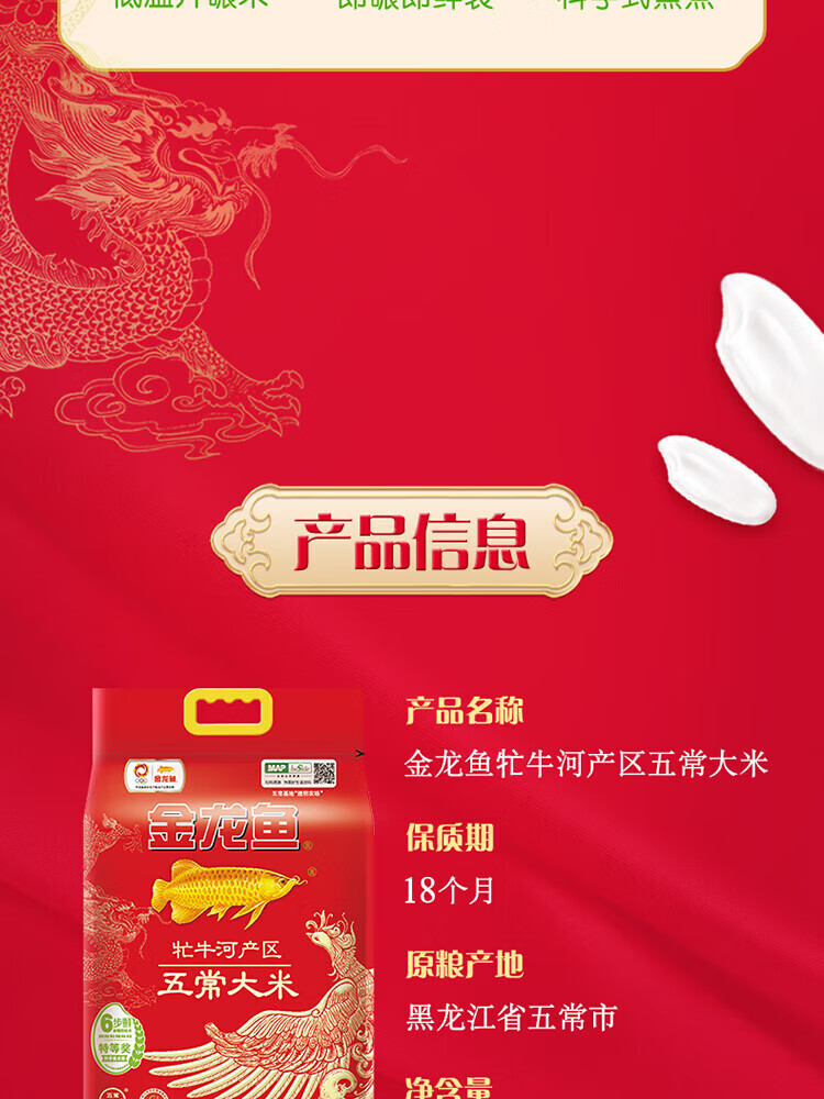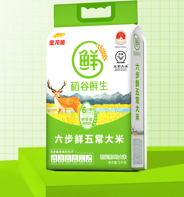 • 商品名称:金龙鱼福鹿献瑞来五常大米5kg 5kg/件