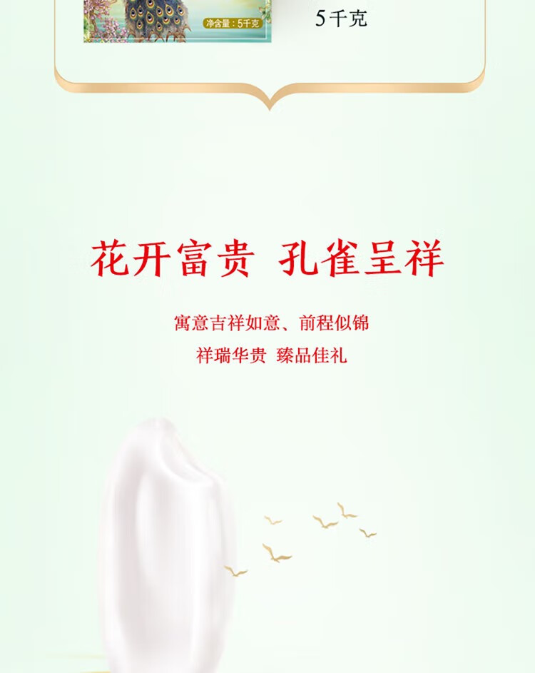商品名称: 金龙鱼 孔雀呈祥飞五常大米 花开富贵 祥瑞华贵 5kg*1袋 大米/袋