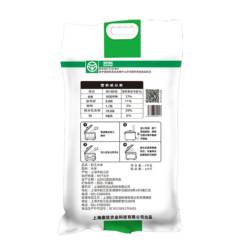 包装清单: 松江绿色大米5kg ×1