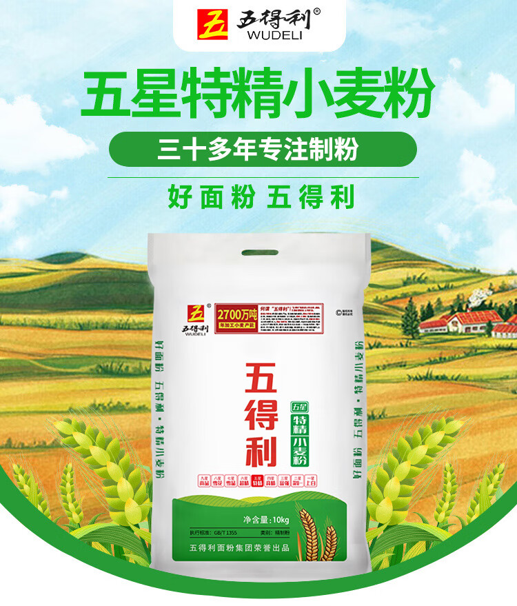 粮油调味  > 面粉/面条  > 通用粉  >  五得利/WUDELI  >  五得利面粉五星特精小麦粉20斤 通用拉面白面 五星特精小麦粉10kg/袋