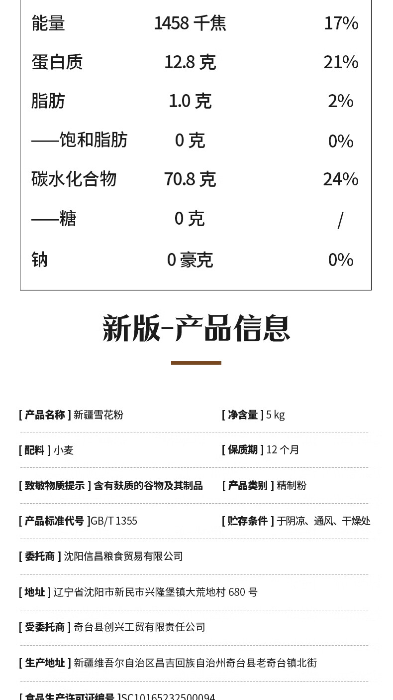 商品名称: 十月稻田 新疆奇台面粉10斤 新疆面粉无添加 白面 中筋小麦粉 饺子粉 十月稻田 新疆雪花面粉5kg/袋