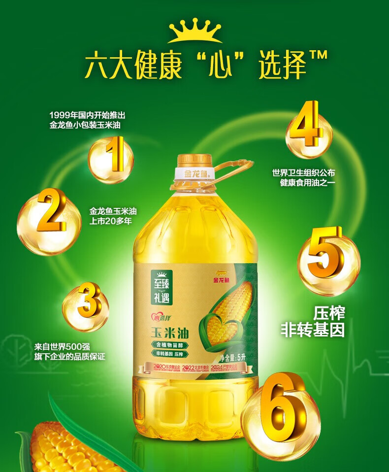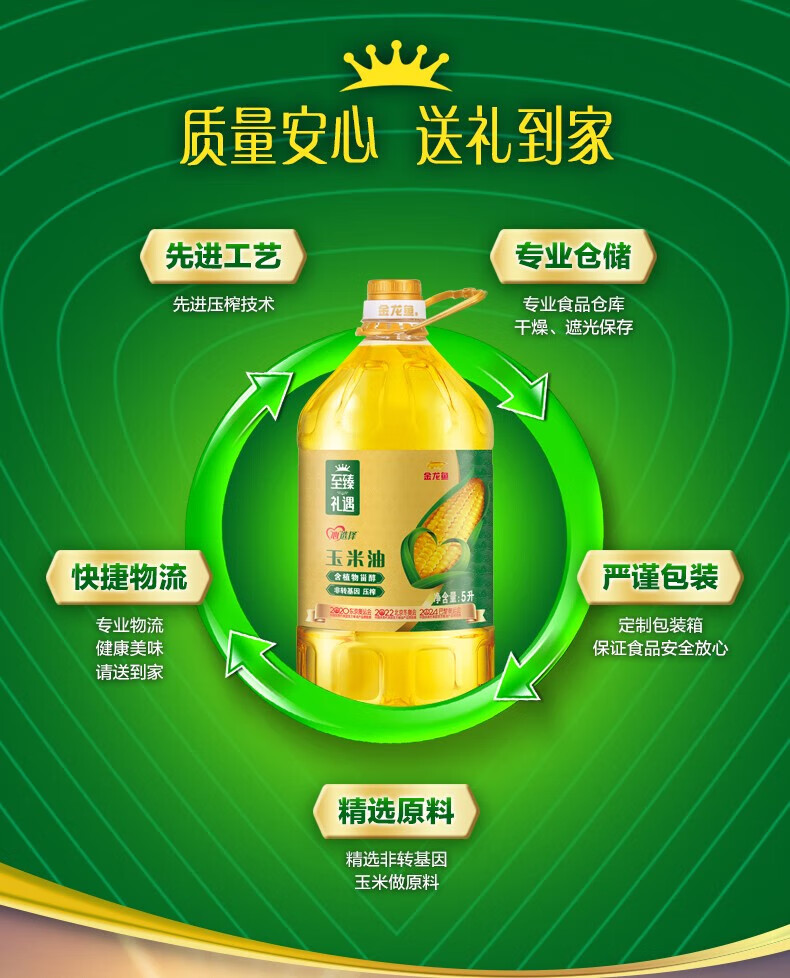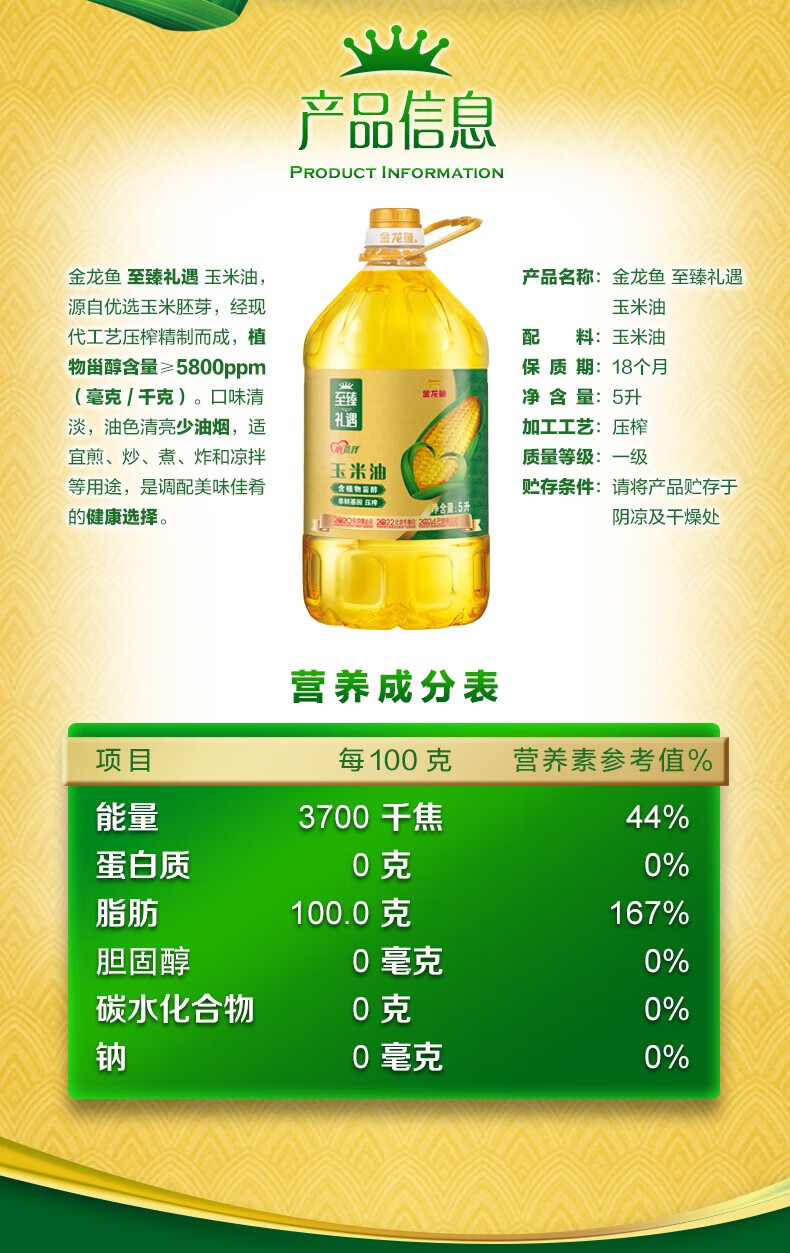 • 商品名称:金龙鱼至臻礼遇玉米油5L F 5L/瓶