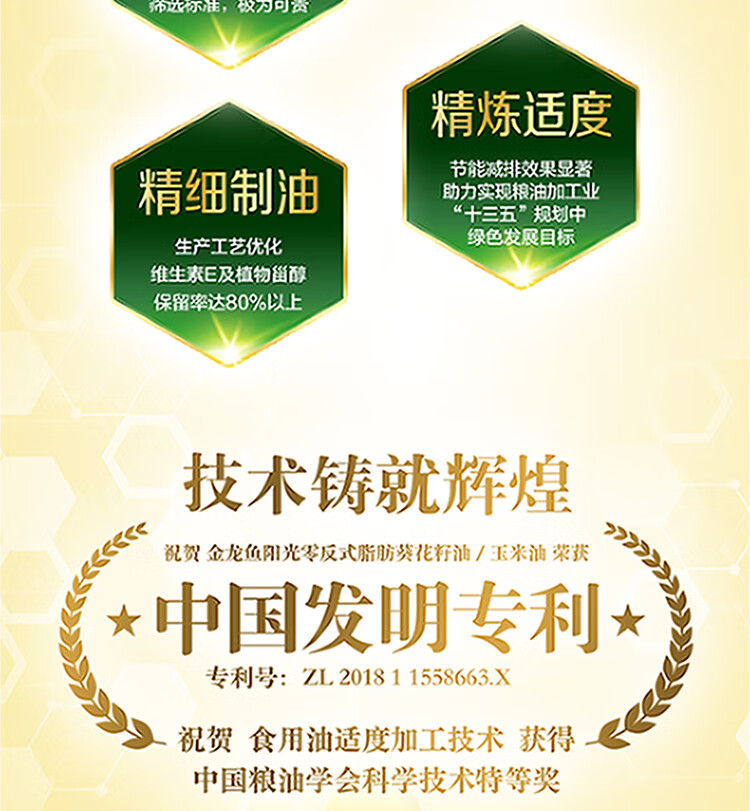 包装清单: 金龙鱼阳光零反式脂肪甾醇玉米油5L*1桶