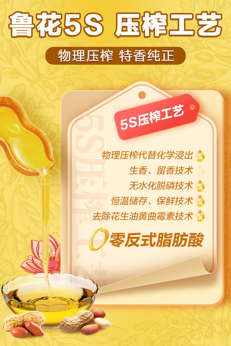 • 商品名称:鲁花【保真花生油】5S 物理压榨 压榨一级 花生油1.8L 花生油/桶