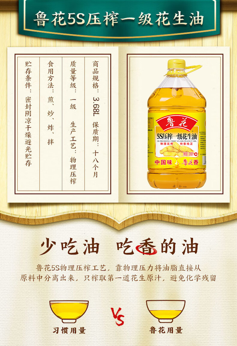 • 商品名称:鲁花食用油 5S压榨 一级花生油 3.68L 花生油/桶