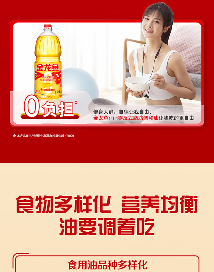 商品名称: 金龙鱼 黄金比例食用调和油1.8L 零反式脂肪食用植物调和油 调和油/瓶