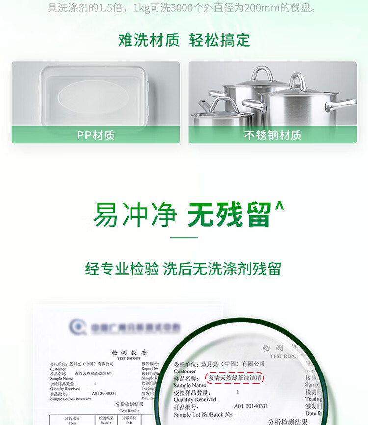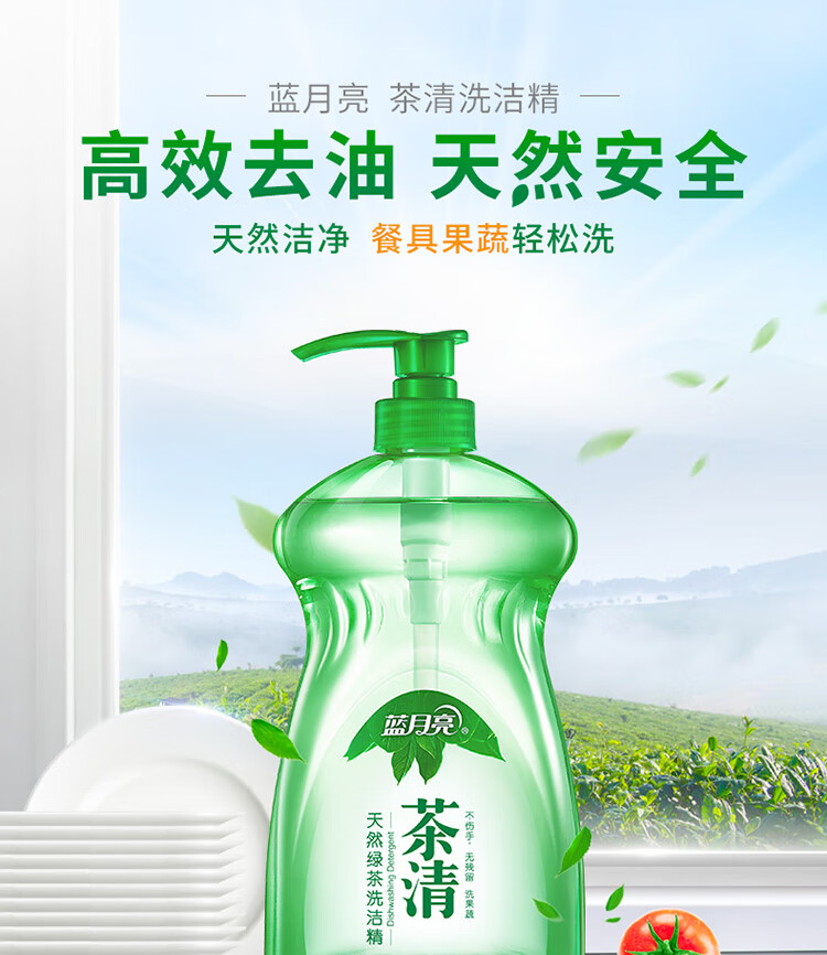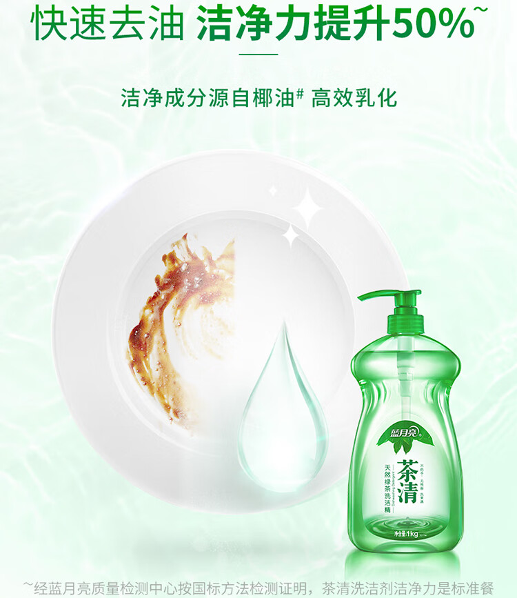 包装清单: 蓝月亮茶清天然绿茶洗洁精1kg/瓶 × 1