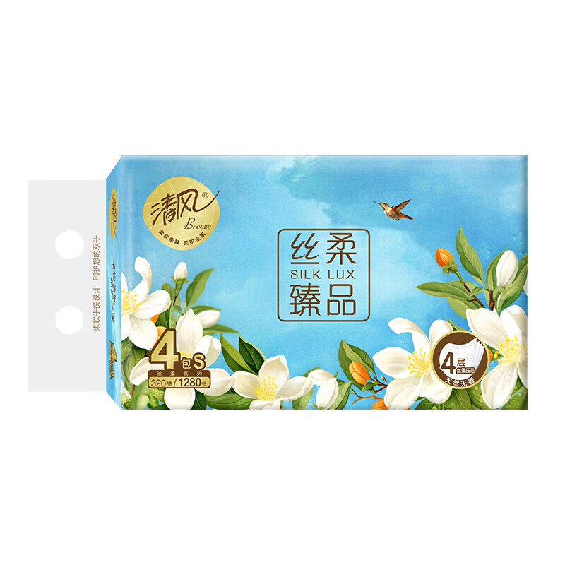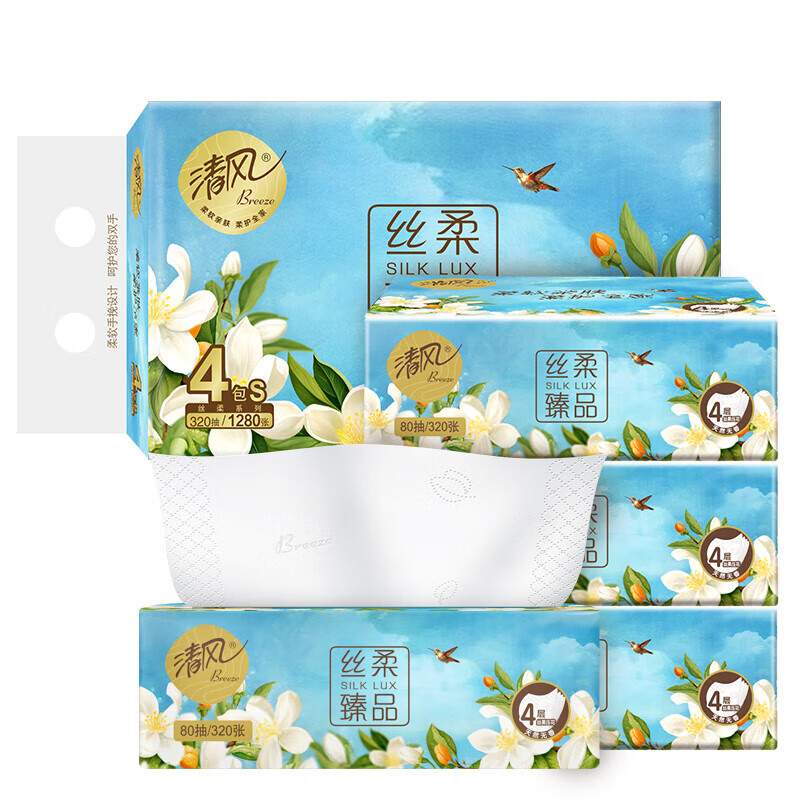 家庭清洁/纸品  > 清洁纸品  > 抽纸  >  清风  >  清风抽纸 花萃4层80抽*4包S码 面巾纸 卫生纸巾 提装BR41SHC(包邮) BR41SHC/提