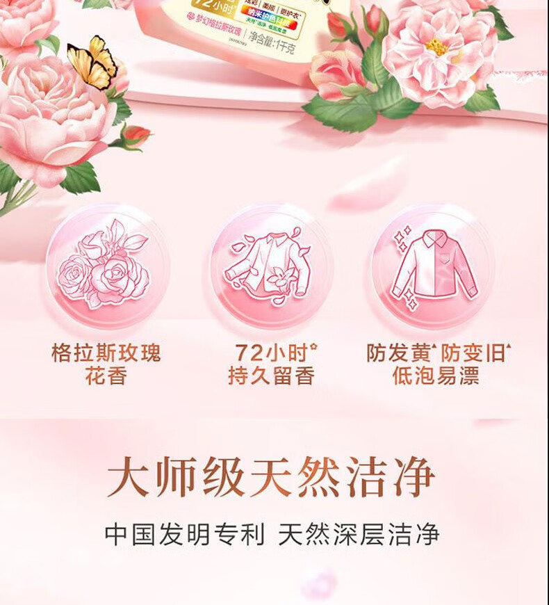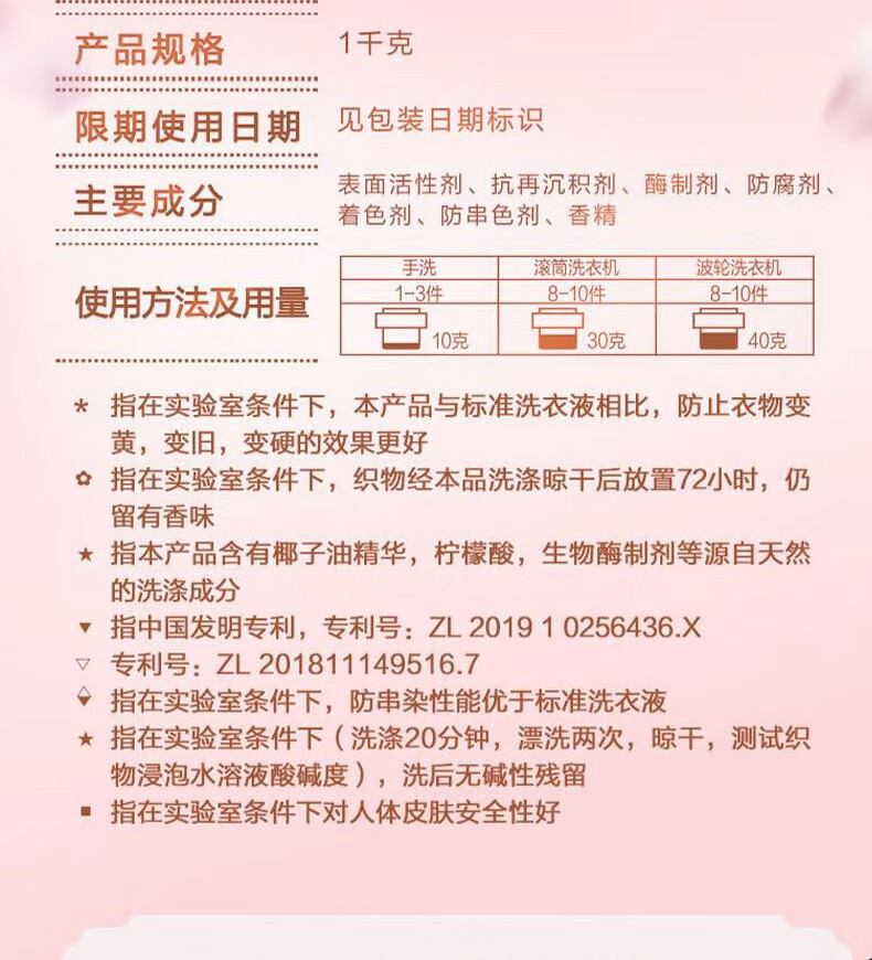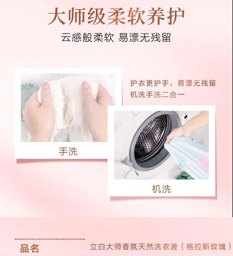 包装清单: 大师香氛洗衣液1kg(瓶装)*2瓶