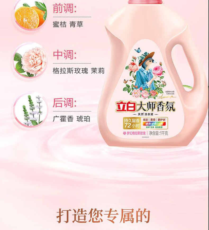 商品名称: 立白大师香氛洗衣液1kg(瓶装)*2瓶 1kg*2/件