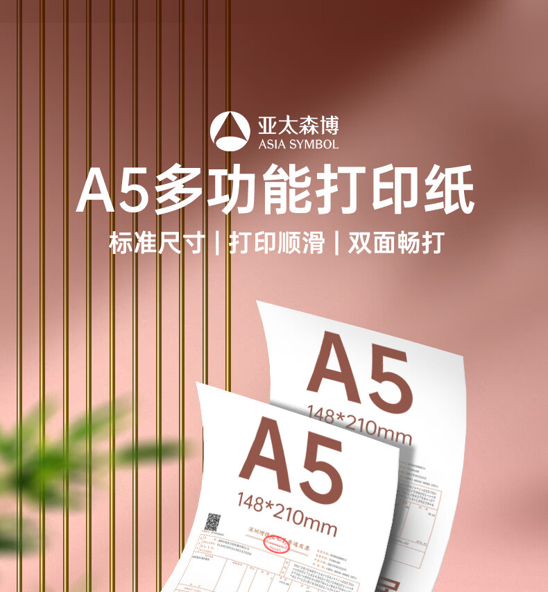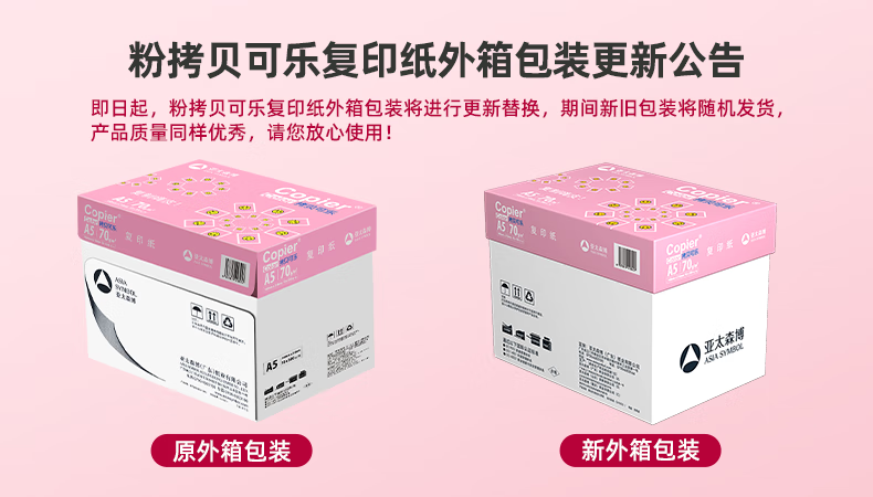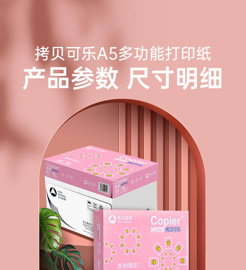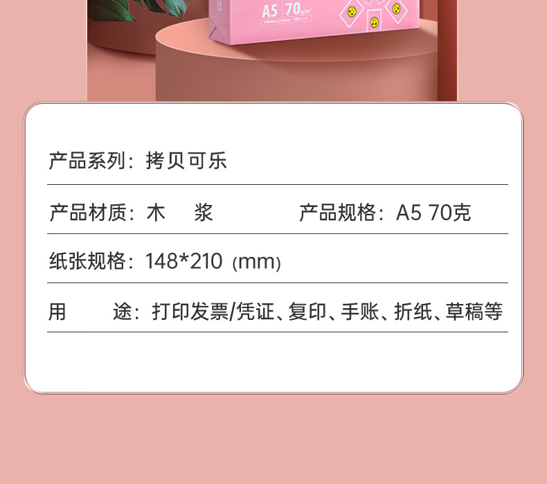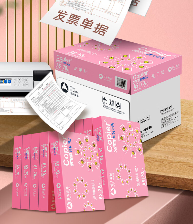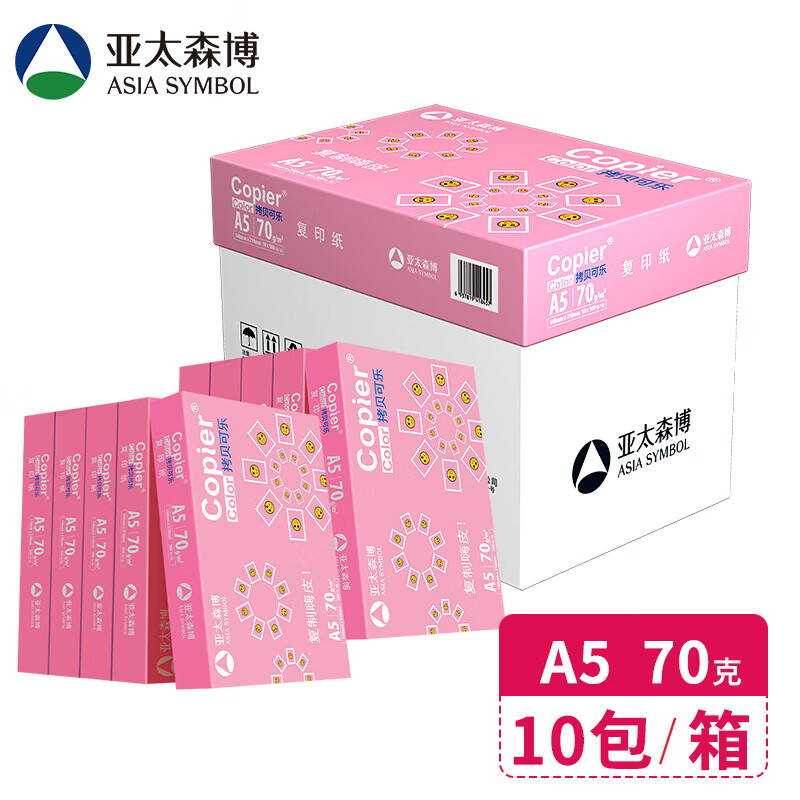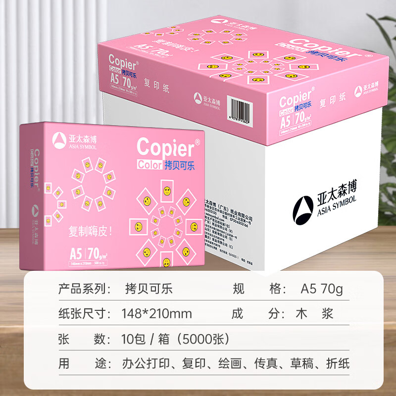 • 商品名称:亚太森博拷贝可乐A5打印纸 70g500张*10包 高品质双面复印纸 发票财务凭证纸 整箱5000张【专业造纸厂牌】 70g A5 10包/箱