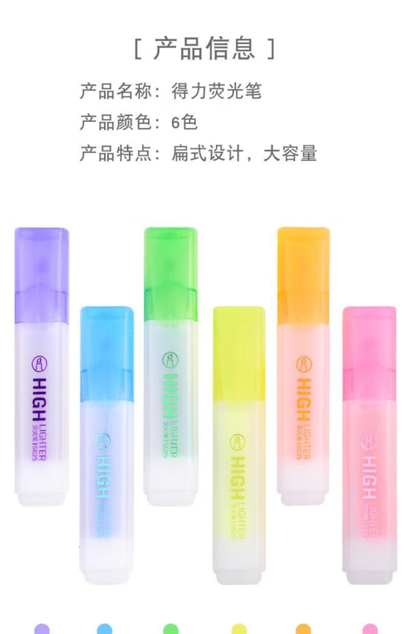 电脑、办公  > 文具  > 笔类  >  得力/deli  >  得力s625大容量单头荧光笔学生用重点标记笔彩色记号笔涂鸦笔混色 蓝色 10支 S625/支