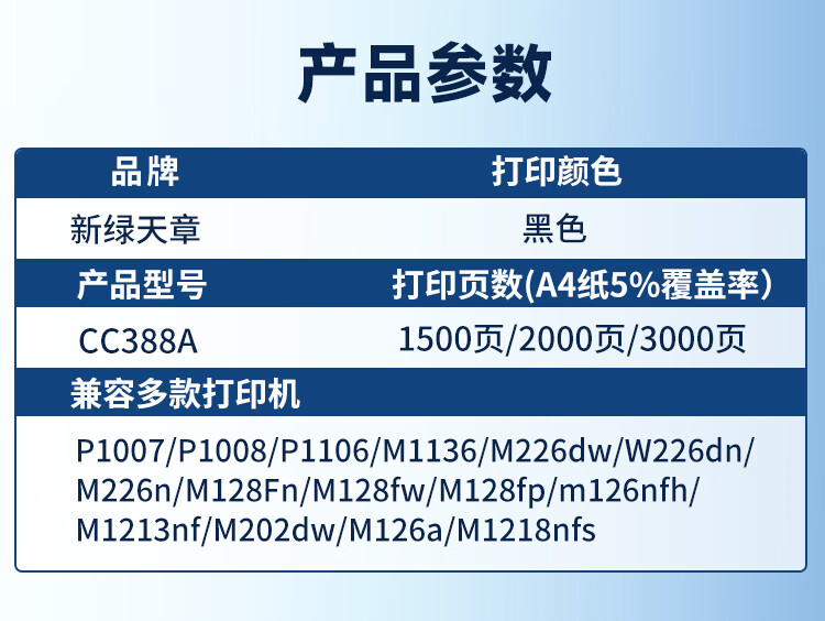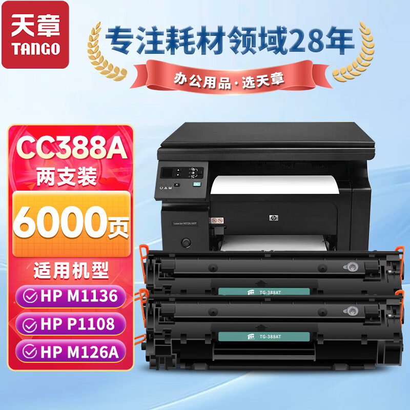 商品名称: 新绿天章惠普m1136硒鼓CC388a适用hpm126a p1108 p1106墨盒1213nfh m128fn 202 226dw mfp打印机1008硒鼓2支 CC388AX大容量/2只装/个
