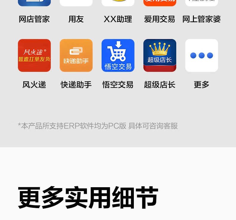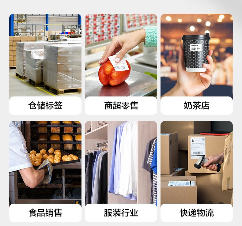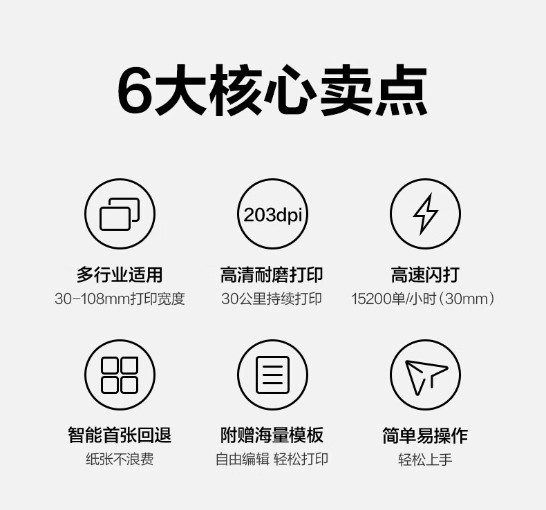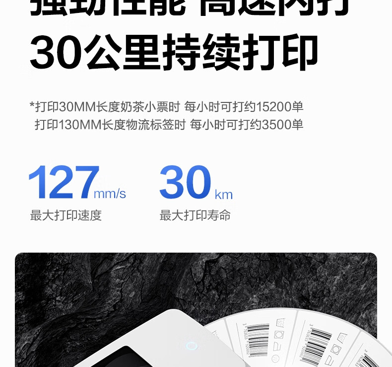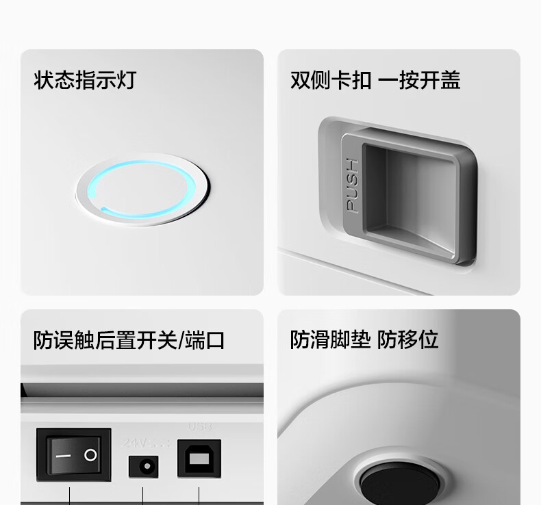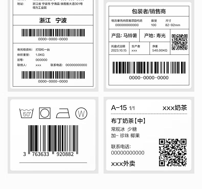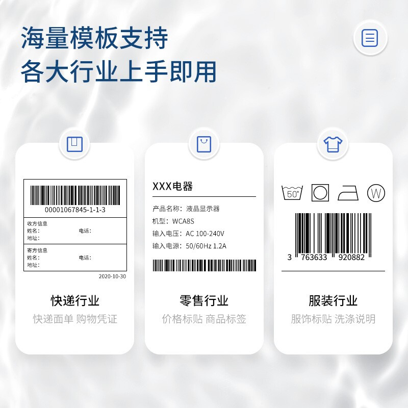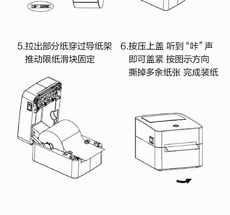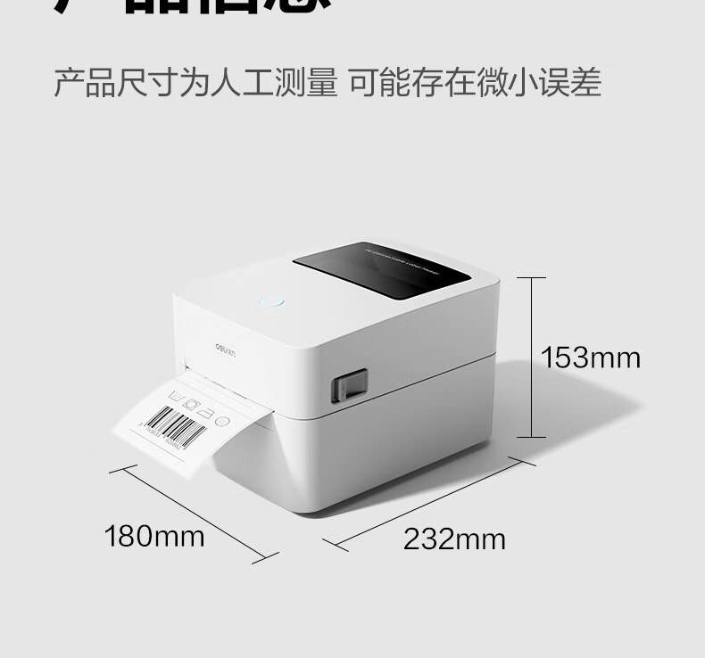 包装清单: 标签打印机×1,说明书×1,数据线×1,电源线×1,纸卷轴×1