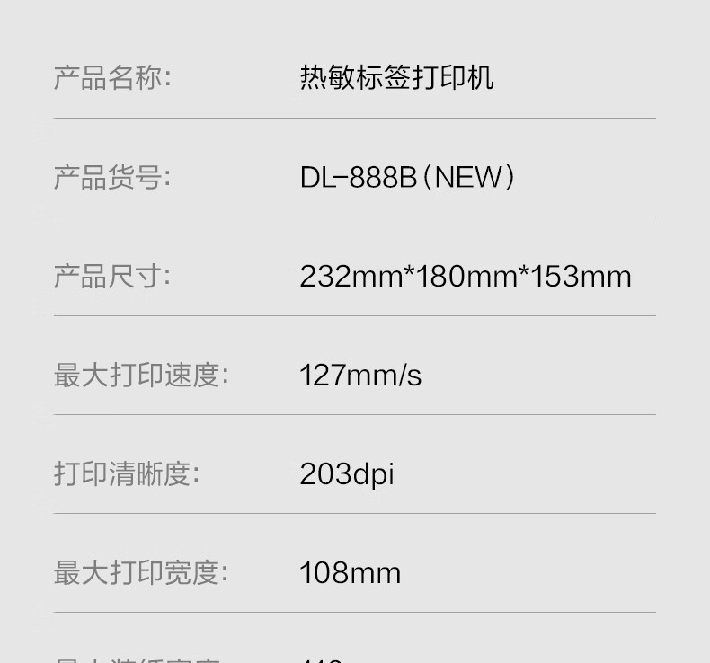 • 商品名称:得力(deli)DL-888B(NEW)热敏标签打印机 快递仓储物流面单固资108mm商用办公打单不干胶条码大纸仓打印 USB版 DL-888B(NEW)/台