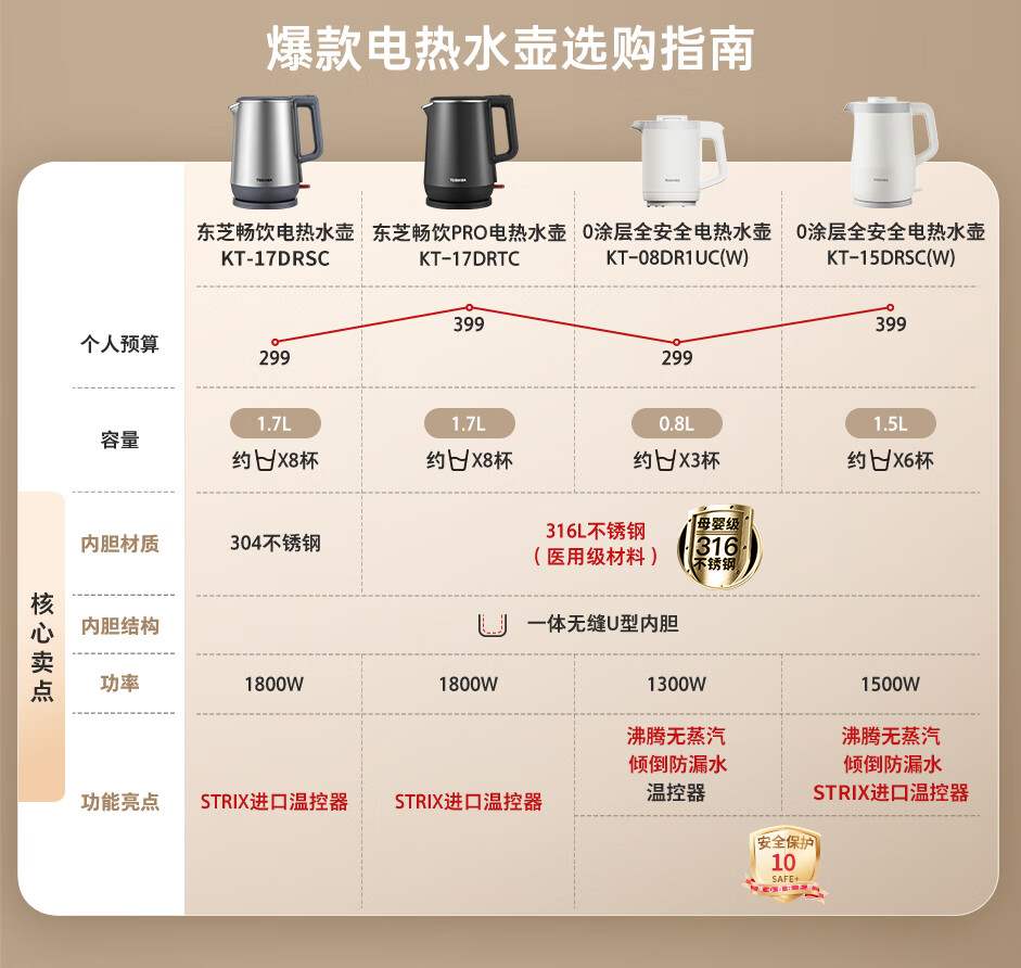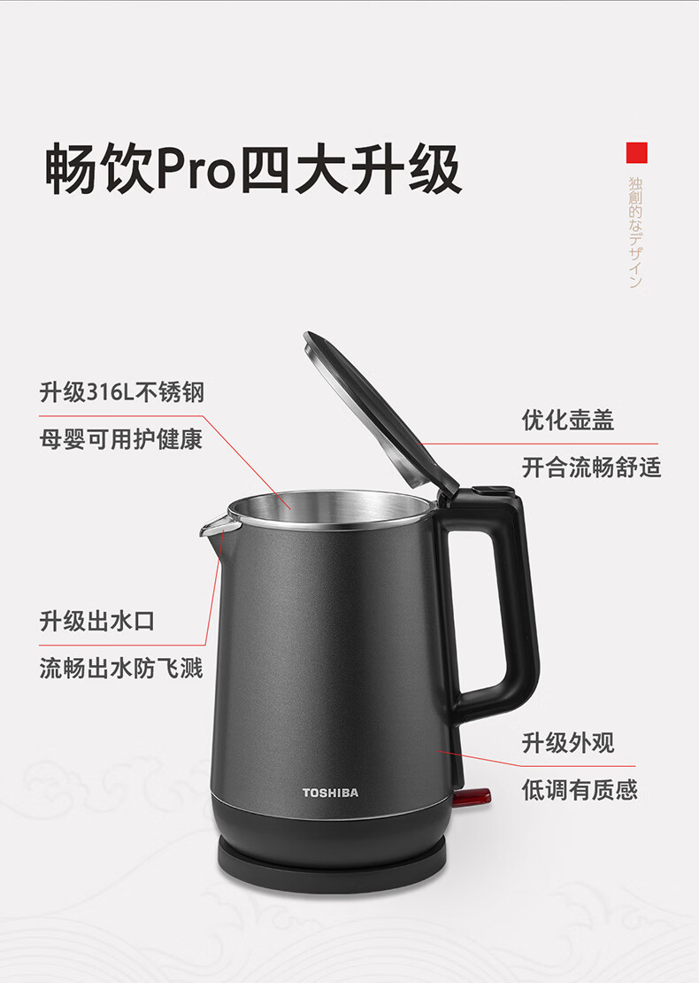商品名称: 东芝(TOSHIBA)防烫烧水壶电热水壶电水壶316L不锈钢内胆1.7升大容量温控煮水壶开水壶KT-17DRTC KT-17DRTC/台