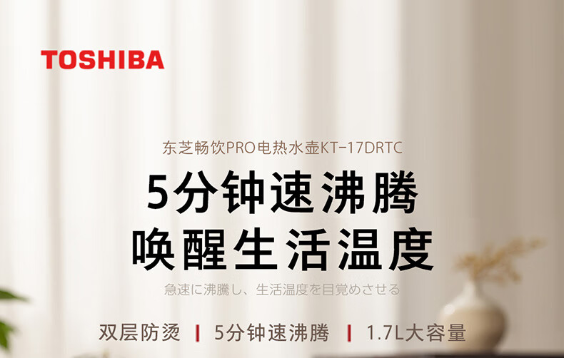 家用电器  > 厨房小电  > 电热水壶  >  东芝/TOSHIBA  >  东芝(TOSHIBA)防烫烧水壶电热水壶电水壶316L不锈钢内胆1.7升大容量温控煮水壶开水壶KT-17DRTC KT-17DRTC/台