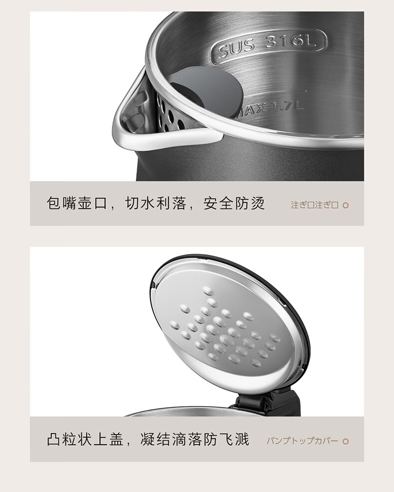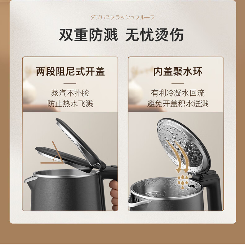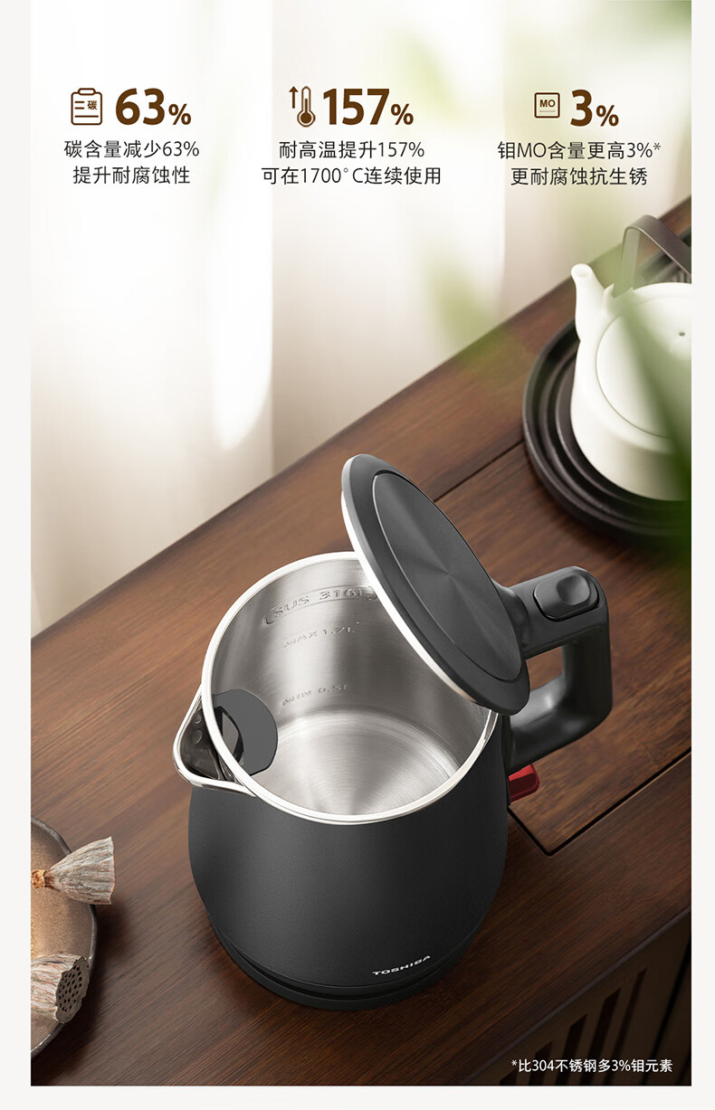 东芝(TOSHIBA)防烫烧水壶电热水壶电水壶316L不锈钢内胆1.7升大容量温控煮水壶开水壶KT-17DRTC KT-17DRTC/台