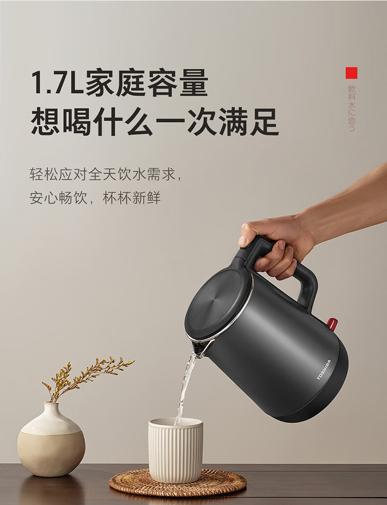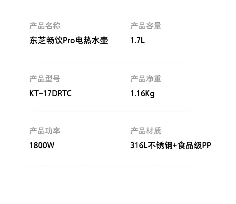 • 商品名称:东芝(TOSHIBA)防烫烧水壶电热水壶电水壶316L不锈钢内胆1.7升大容量温控煮水壶开水壶KT-17DRTC KT-17DRTC/台