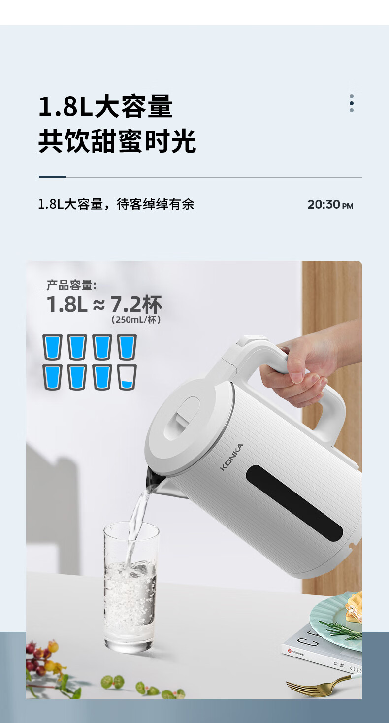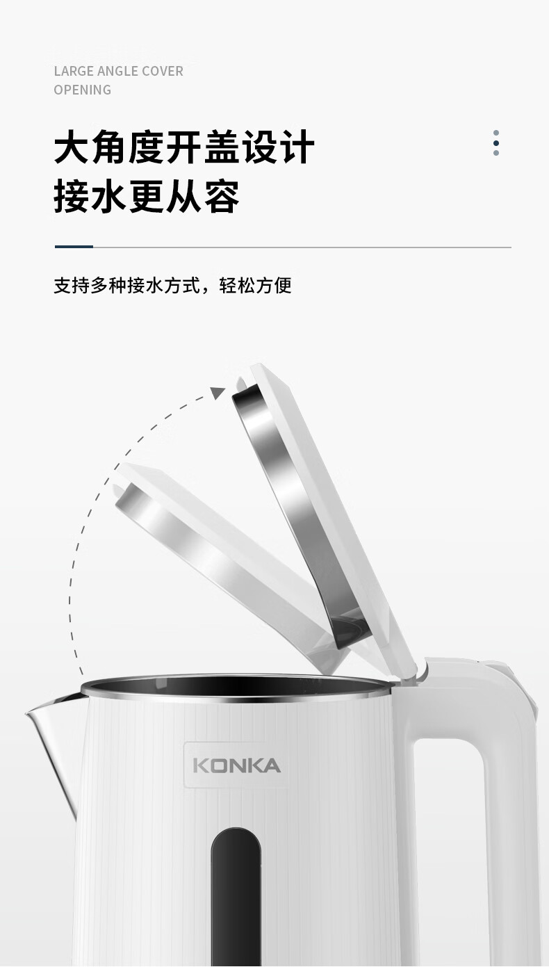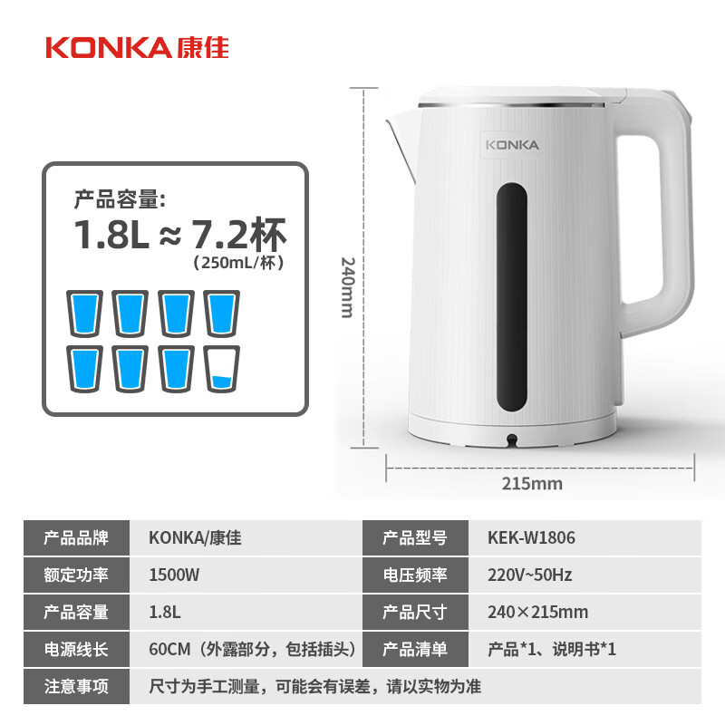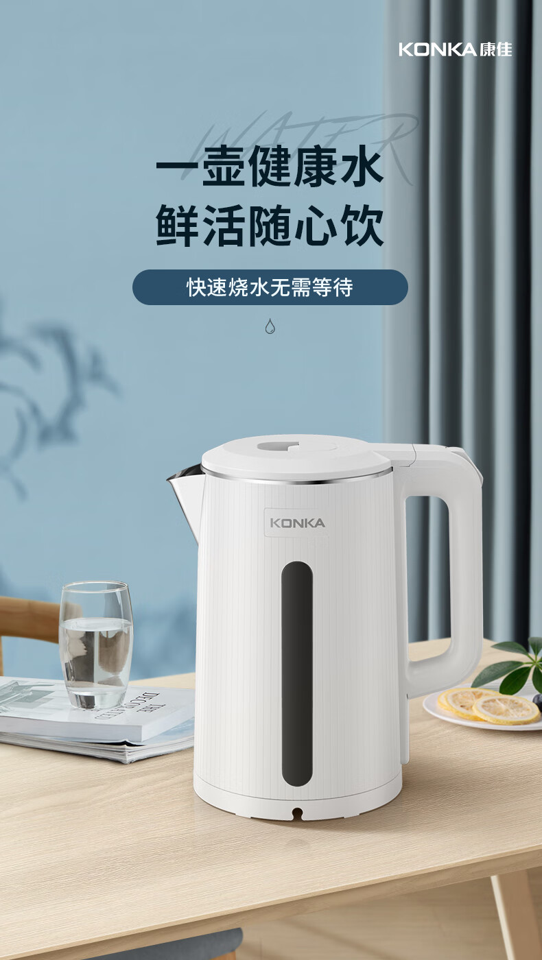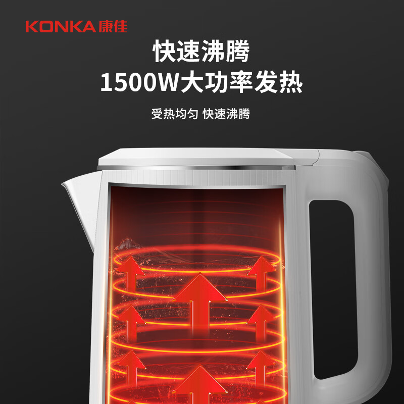 • 商品名称:康佳(KONKA)电热水壶 304不锈钢双层防烫 1.8L大容量 烧水壶暖水壶开水壶电水瓶 KEK-W1806 KEK-W1806/台