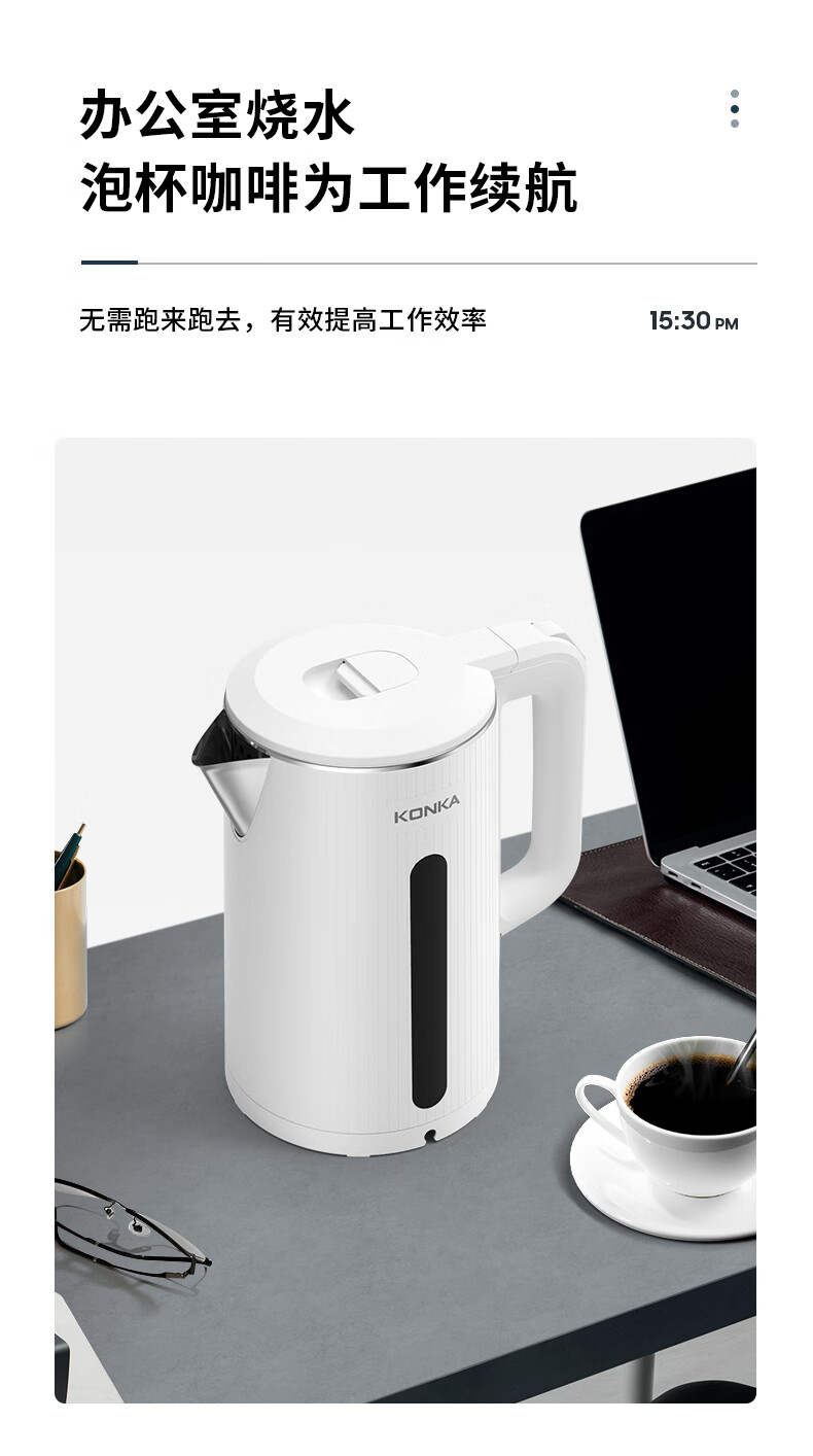 康佳(KONKA)电热水壶 304不锈钢双层防烫 1.8L大容量 烧水壶暖水壶开水壶电水瓶 KEK-W1806 KEK-W1806/台
