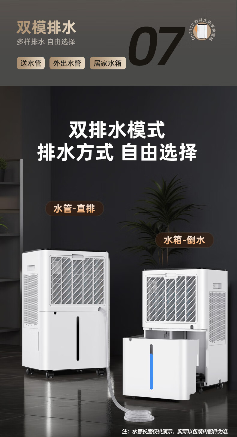 包装清单: 除湿机 × 1说明书 × 1 保修卡 × 1 排水管 × 1