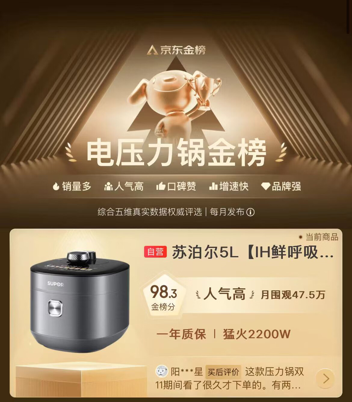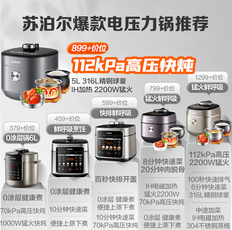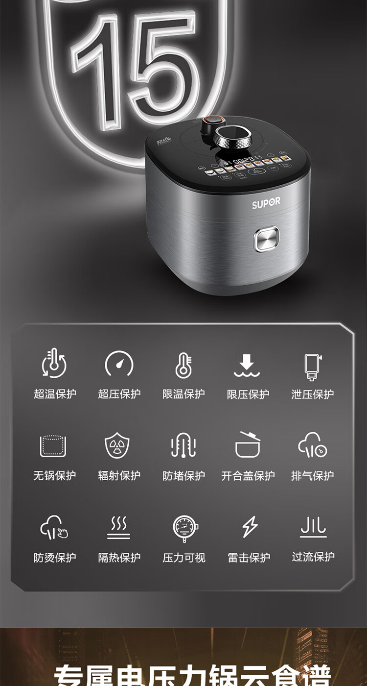 家用电器  > 厨房小电  > 电压力锅  >  苏泊尔/SUPOR  >  苏泊尔(SUPOR)IH鲜呼吸猛火电压力锅5L高压112kPa电饭煲高压锅4-6人家用316L球釜SY-50HC8015Q SY-50HC8015Q/台