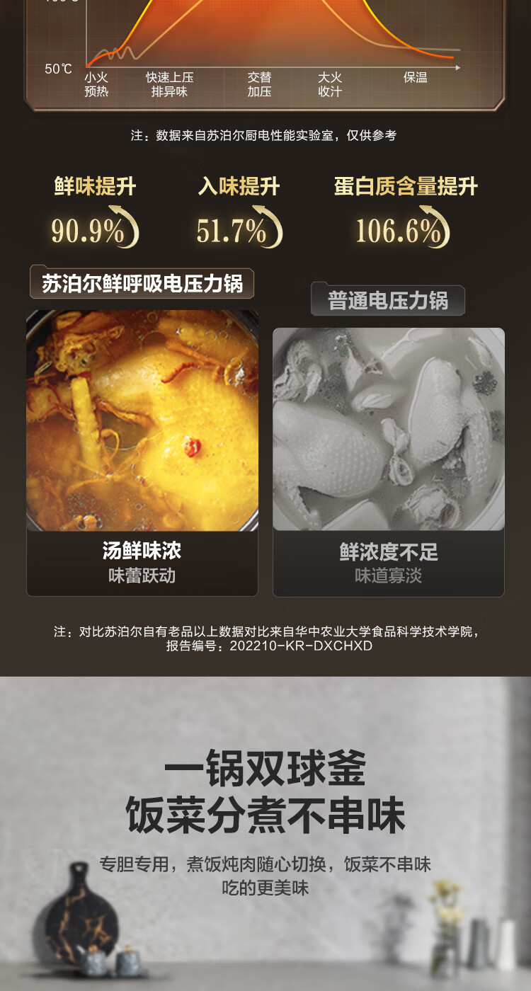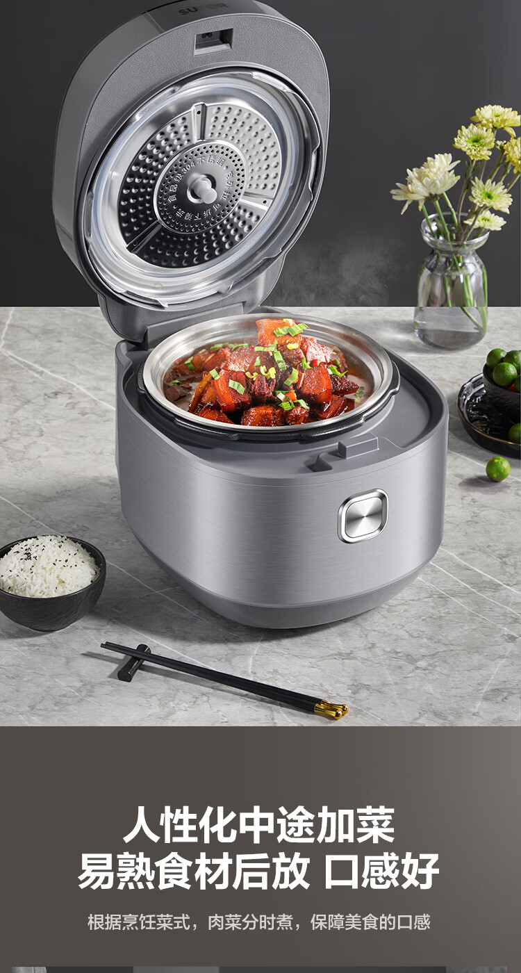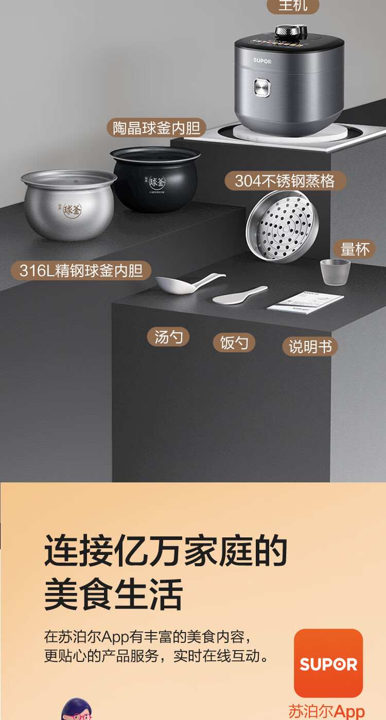 • 商品名称:苏泊尔(SUPOR)IH鲜呼吸猛火电压力锅5L高压112kPa电饭煲高压锅4-6人家用316L球釜SY-50HC8015Q SY-50HC8015Q/台