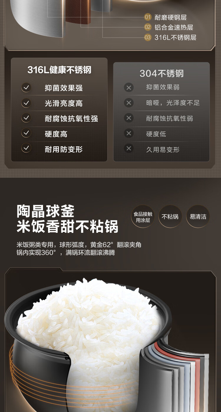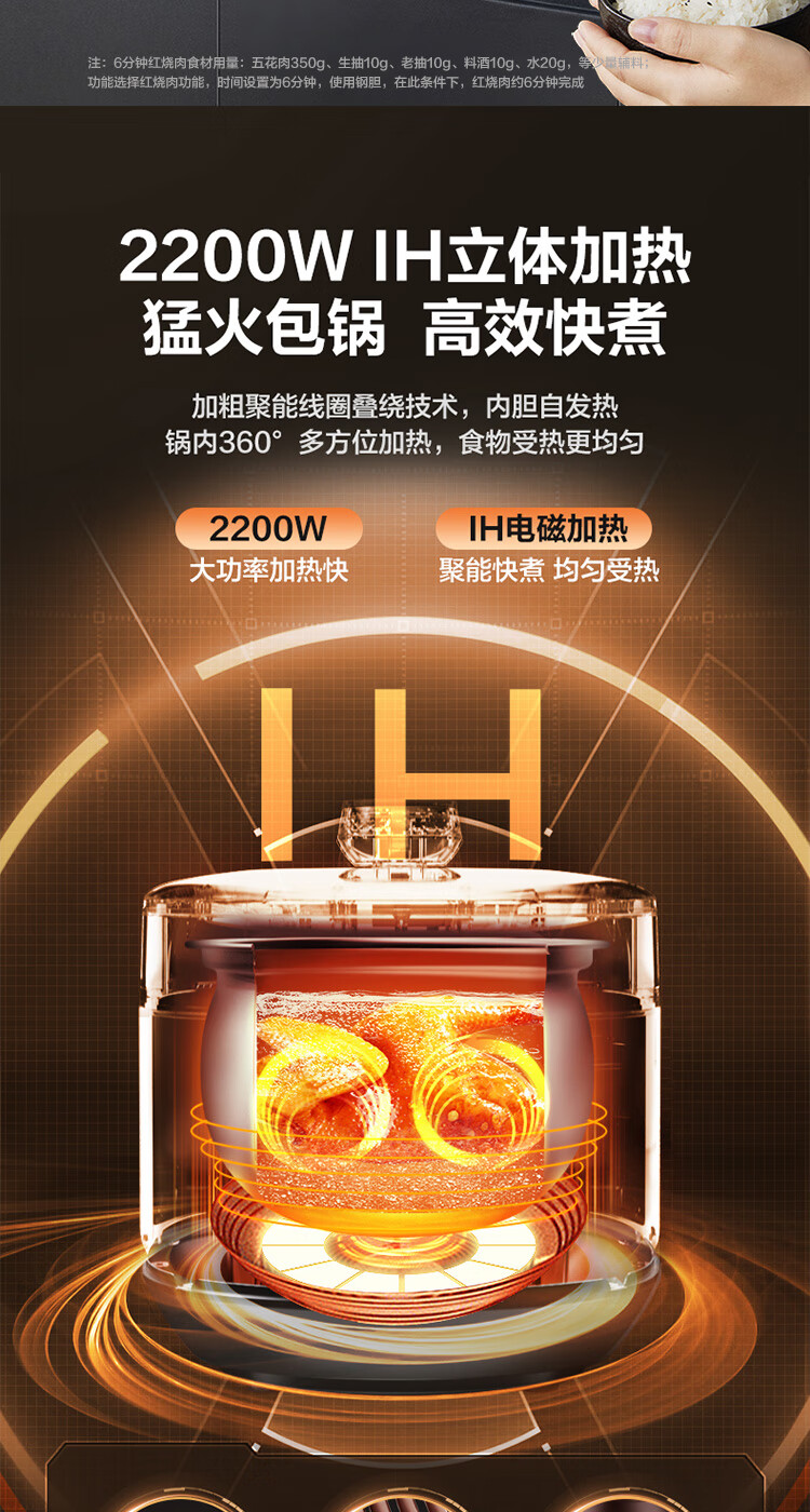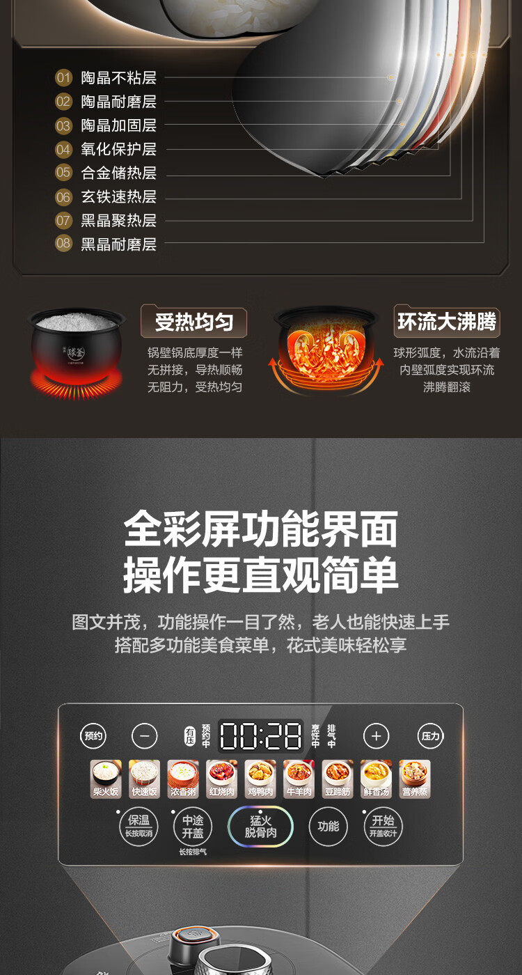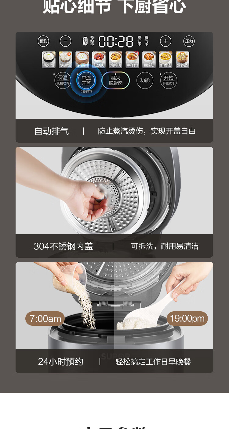 • 商品名称:苏泊尔(SUPOR)IH鲜呼吸猛火电压力锅5L高压112kPa电饭煲高压锅4-6人家用316L球釜SY-50HC8015Q SY-50HC8015Q/台