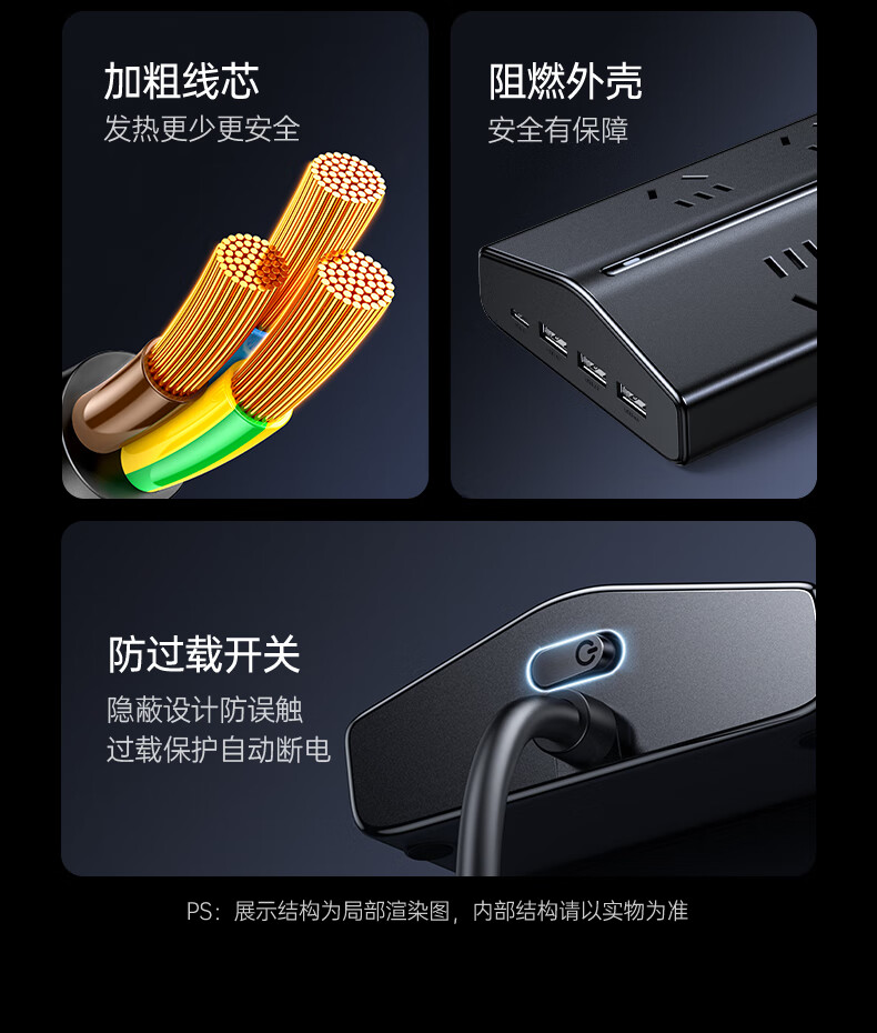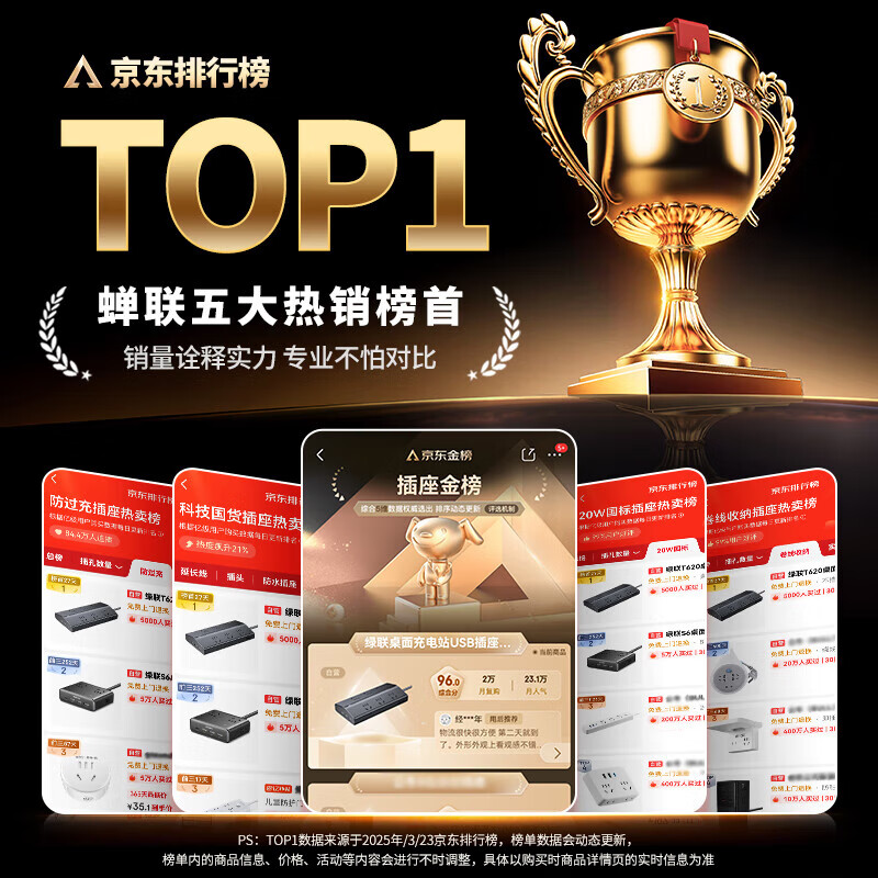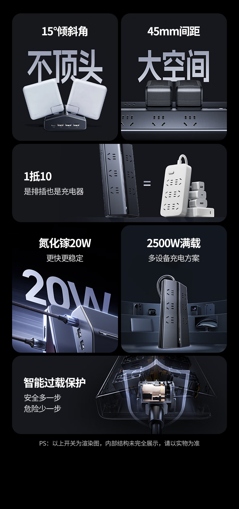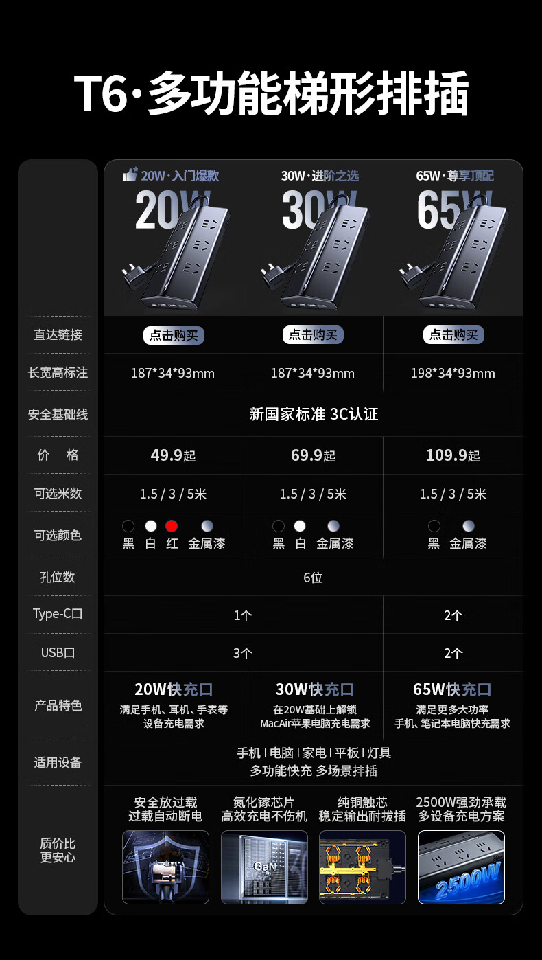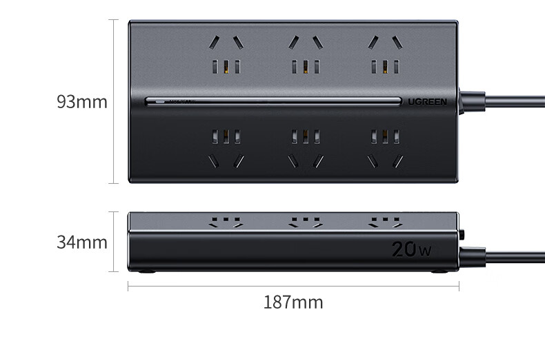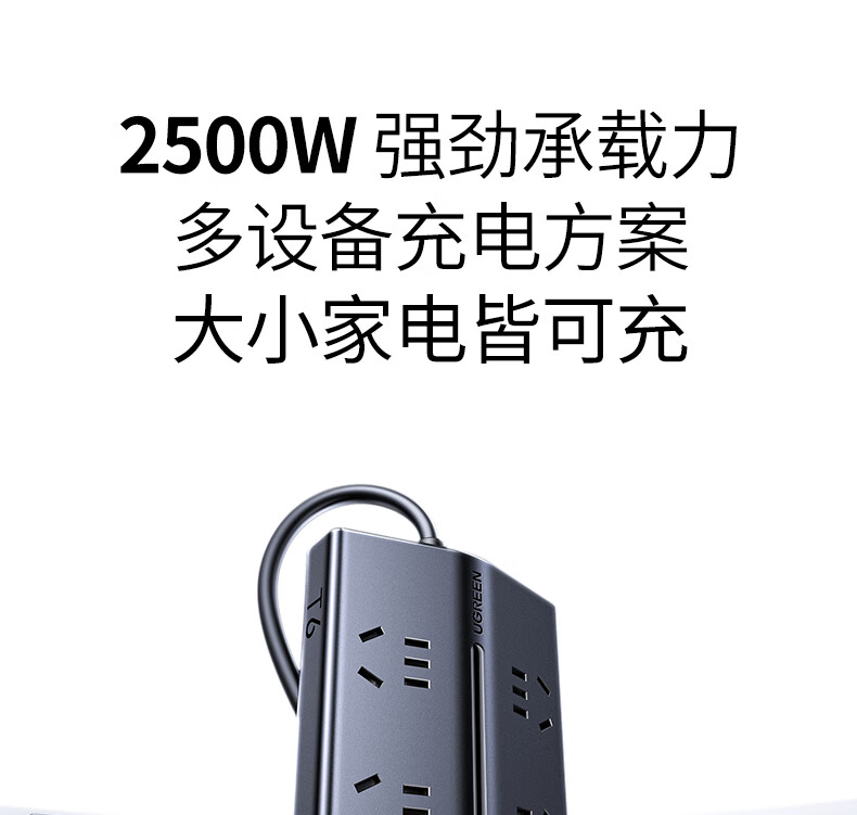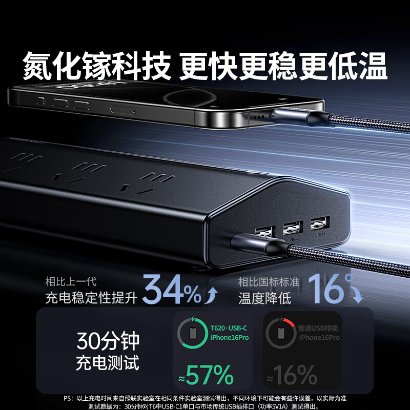 • 商品名称:绿联T6插排新国标多功能usb梯形排插20W氮化镓快充插座过载保护电脑桌面充电站接插线板6位总控1.5米 T620/个